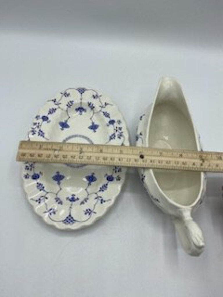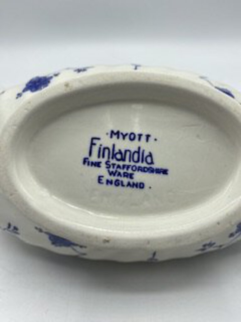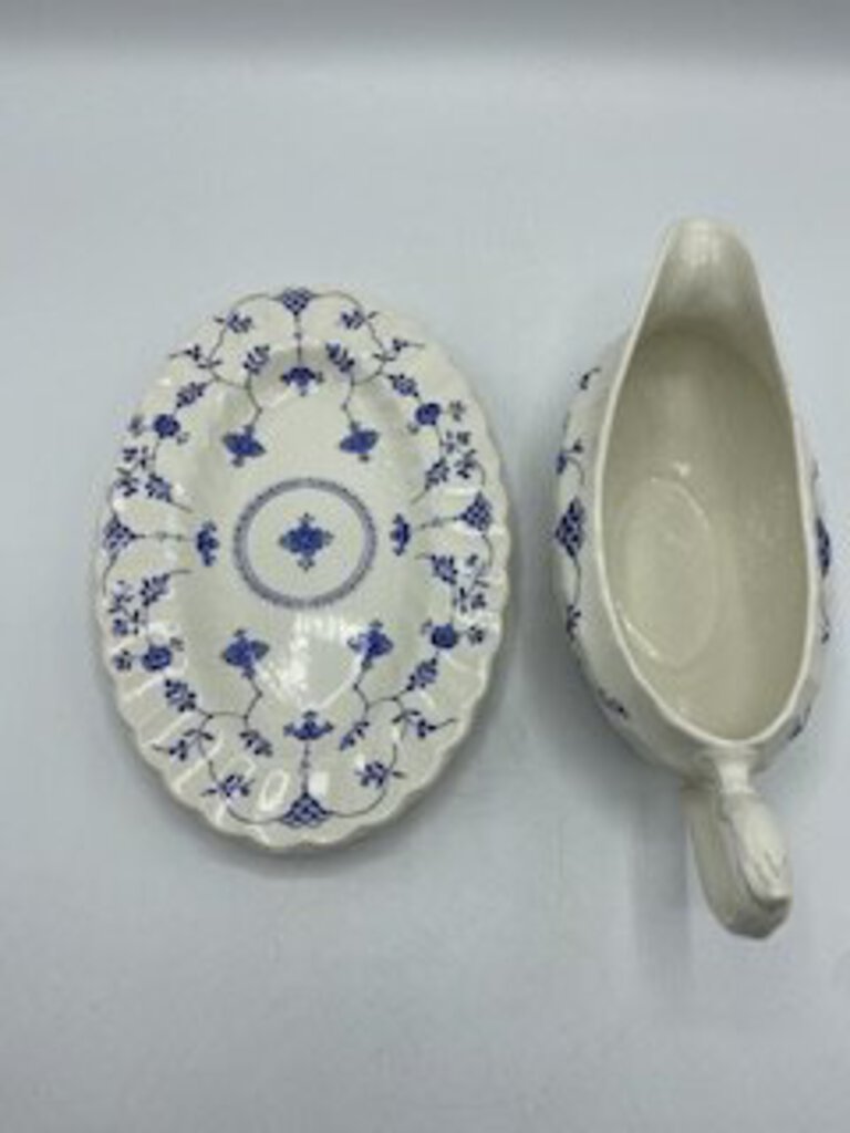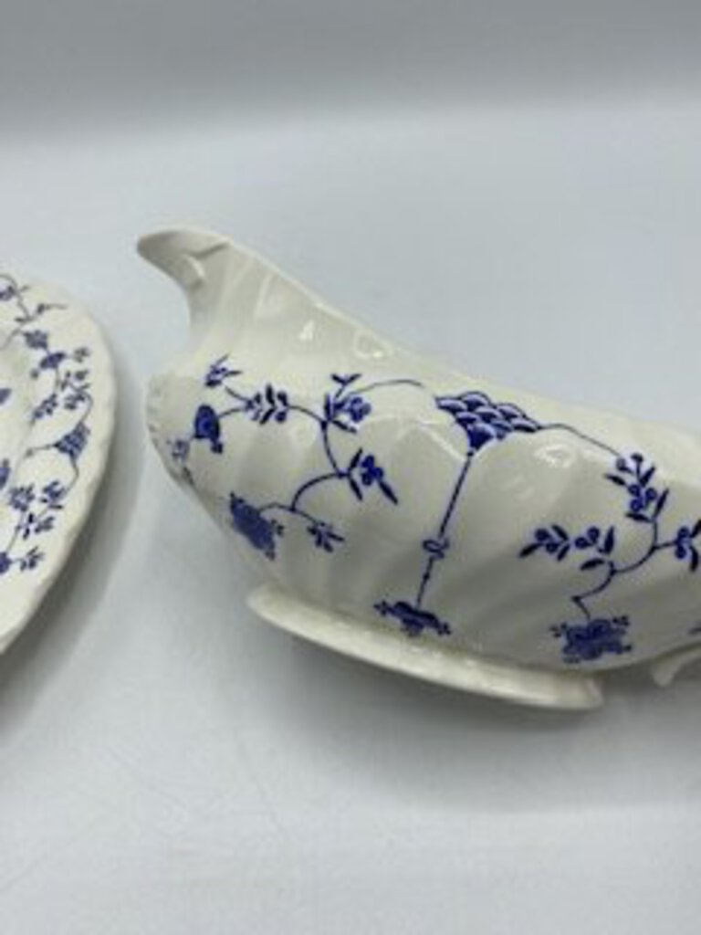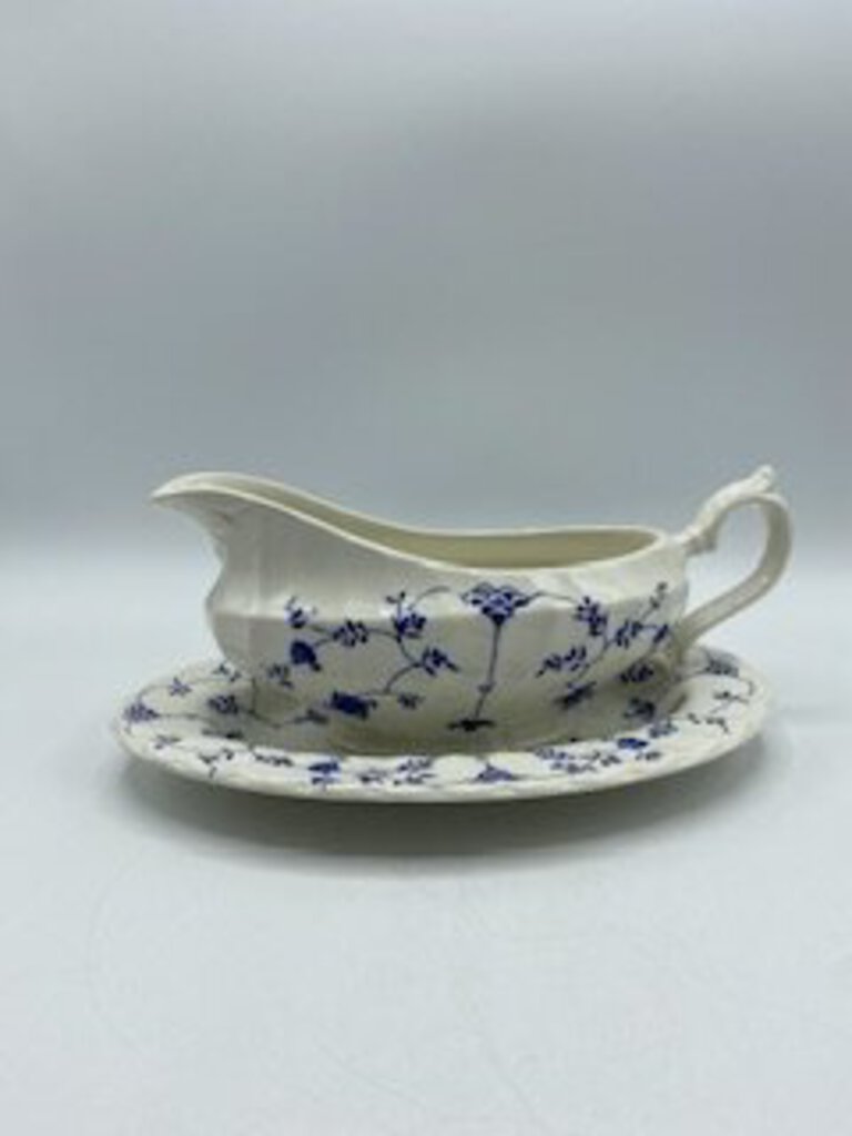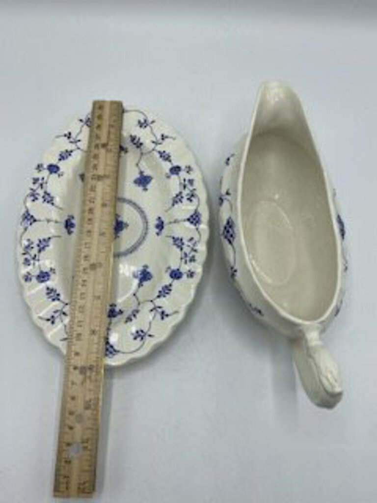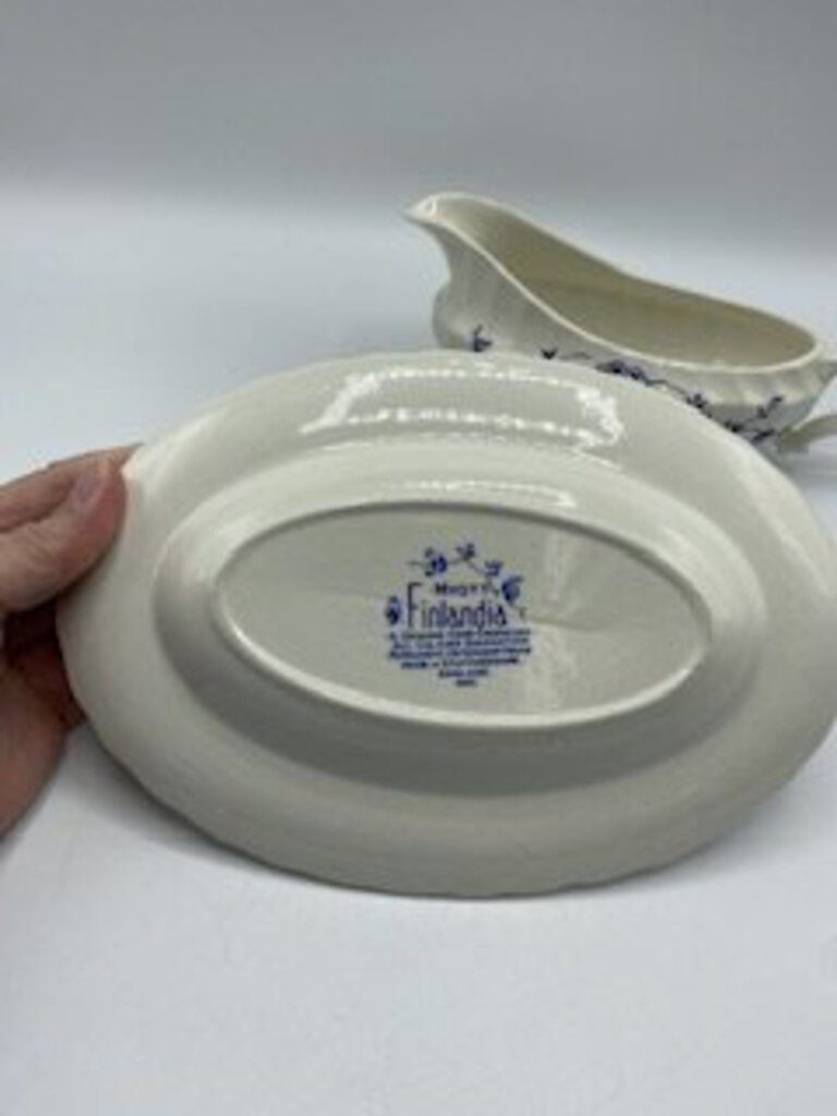 Myott Finlandia Fine Staffordshire Ware England Blue/White Gravy Boat w/Underplate /roh