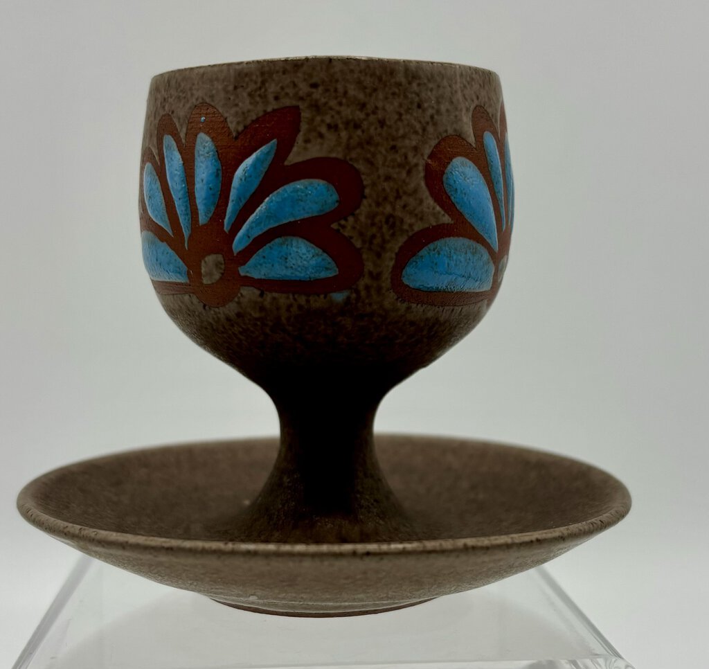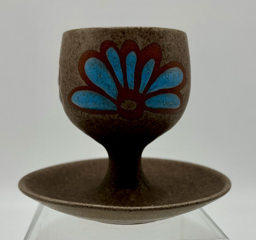 This is a lovely hand made and decorated pedestal egg cup from the Wellhouse pottery in Paignton in Devon. It is 3 inches high a3 1/8 inches across. It is pre-owned and in very good condition with no visible chips, cracks or other wear. Please see photos for condition.