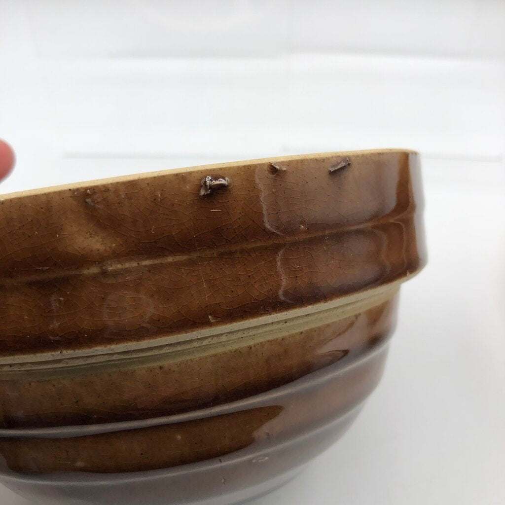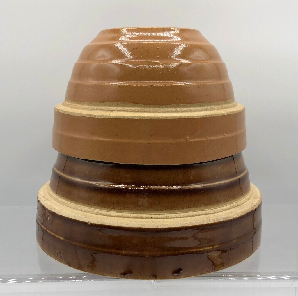 Pair 1920s Yellow Ware Nesting Bowls #5 & #6 USA /b