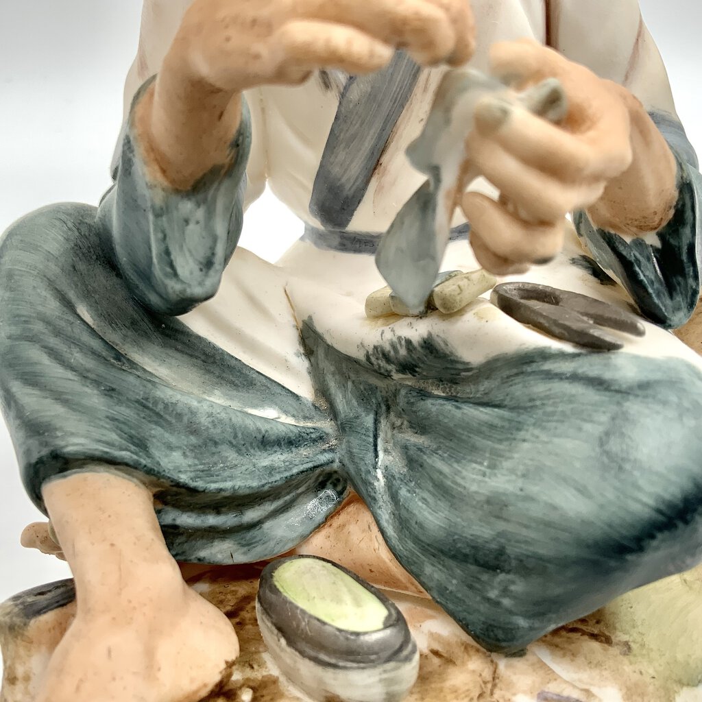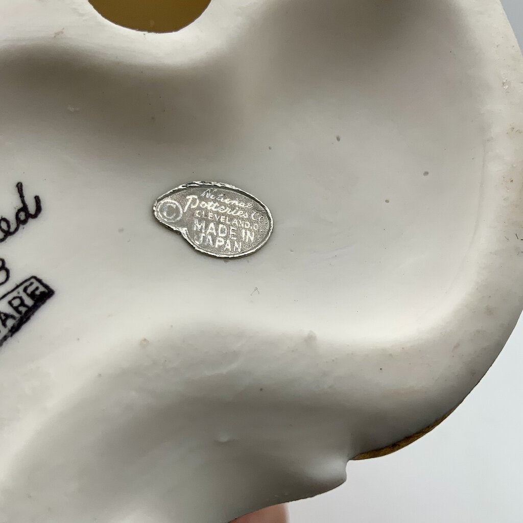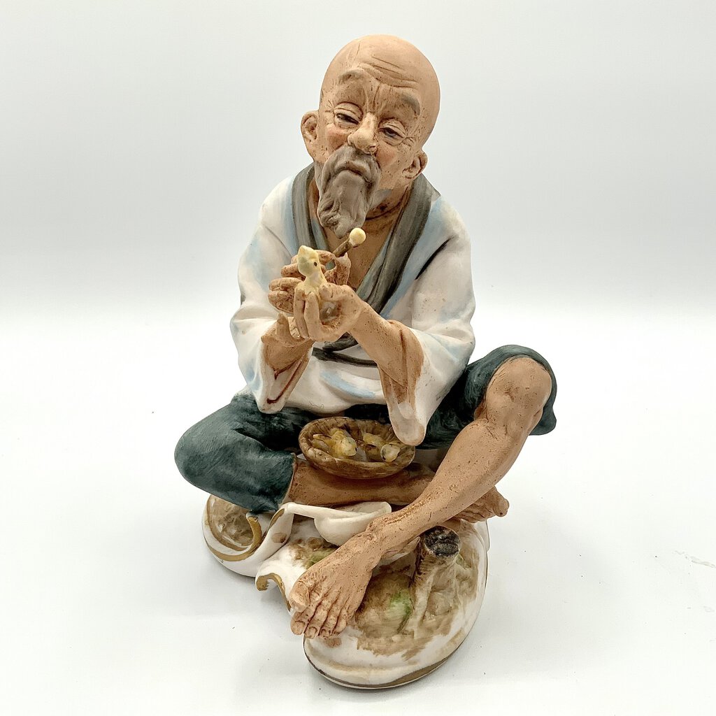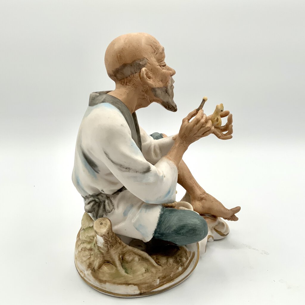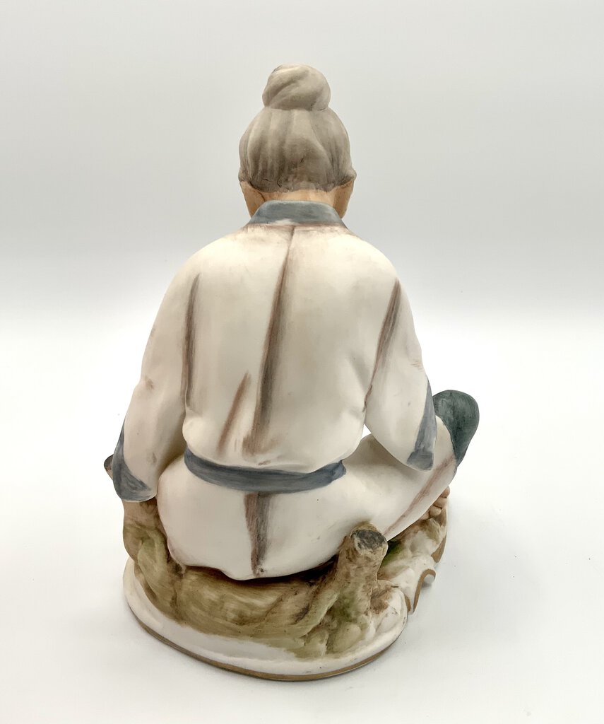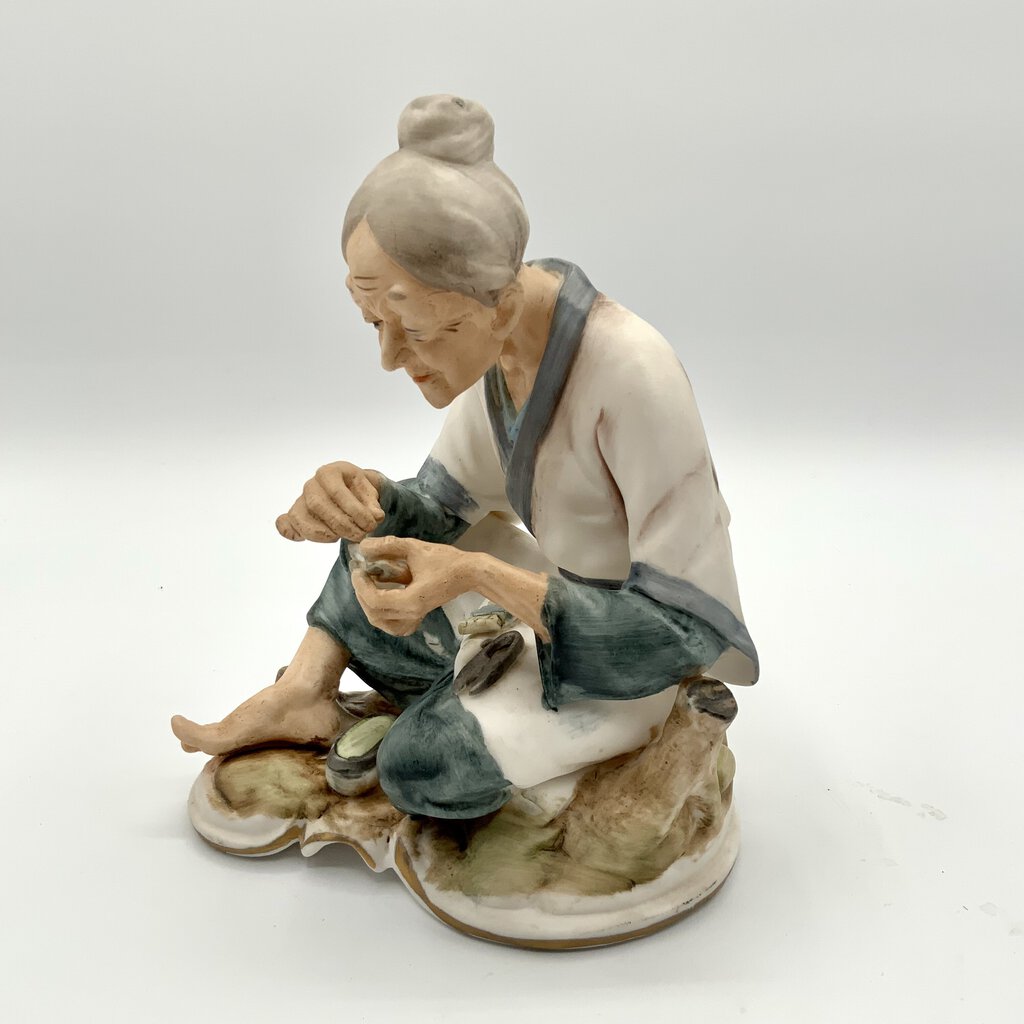 Adorable pair of vintage hand painted Napco C-4923 figurines. Made in Japan. Old man feeding baby bird and old women doing needlework. Both figurines are in excellent condition. The old women has a mold crack from manufacture (pictured), but otherwise no chips, cracks, or repairs. Priced appropriately. Perfect for collectors. Stamps and stickers at the bottom of both figurines.