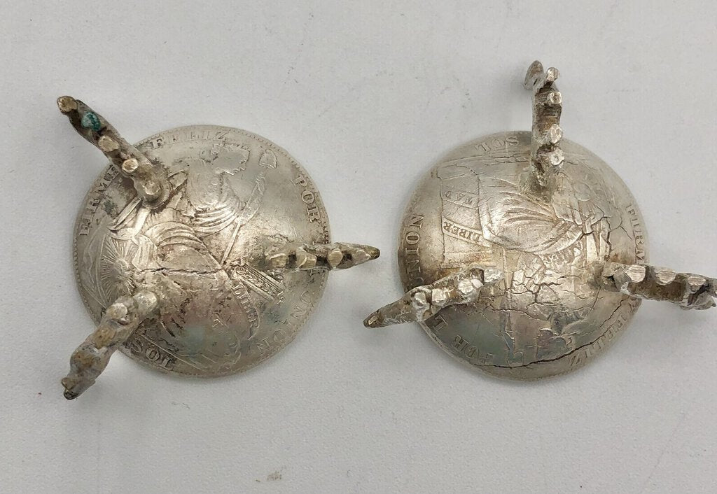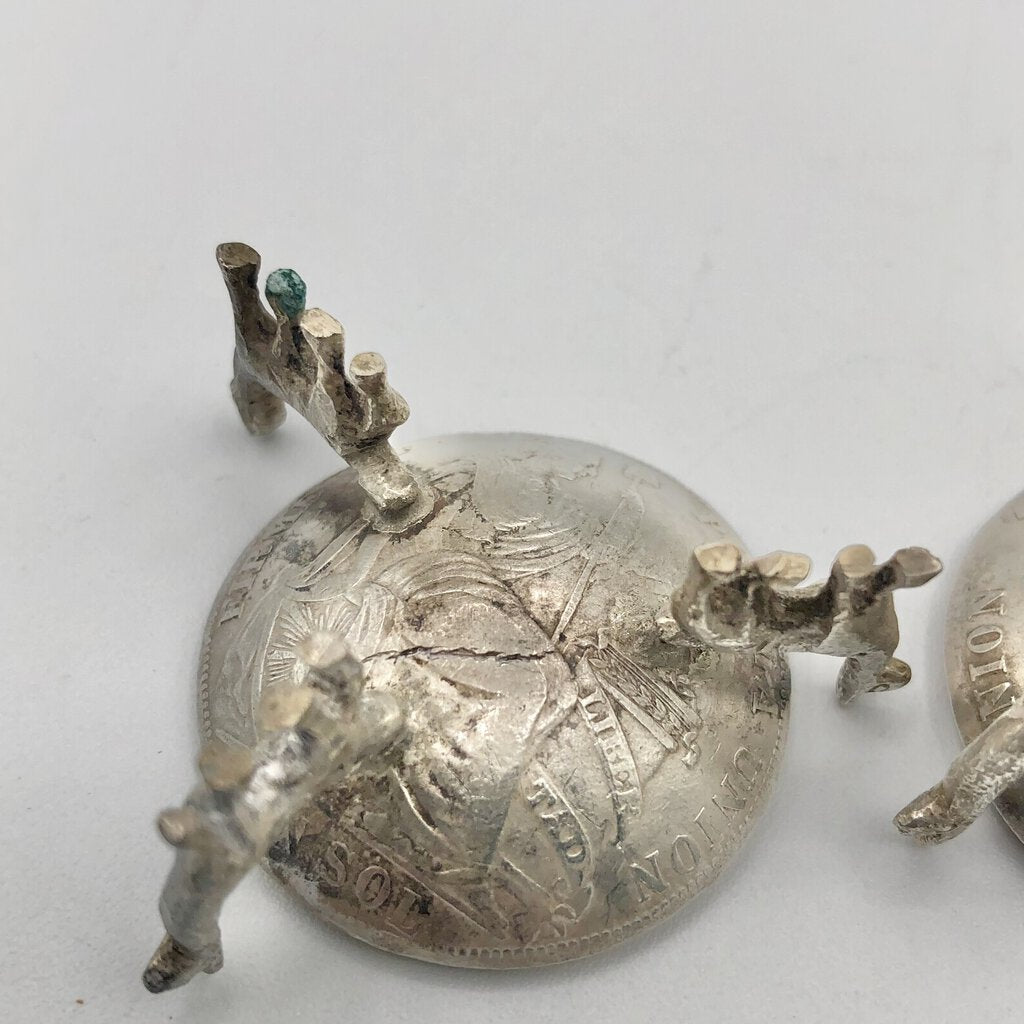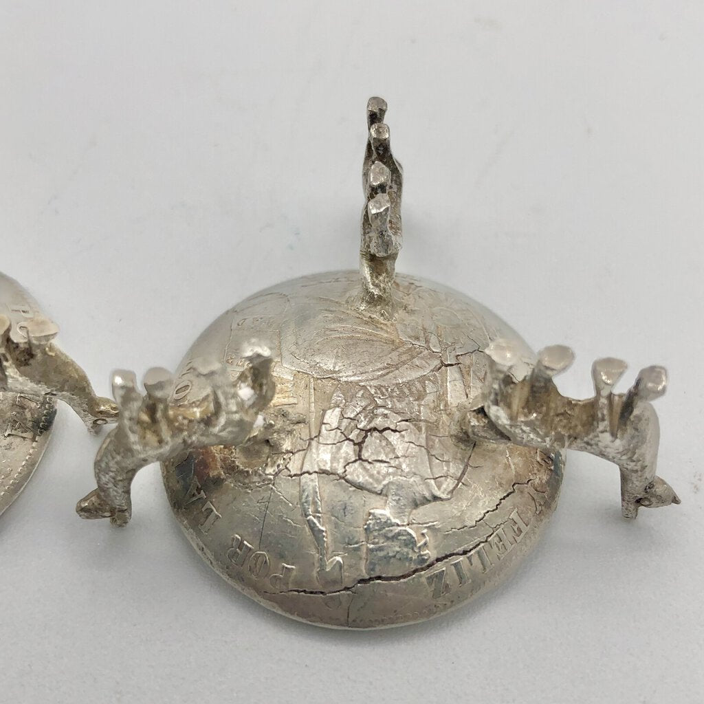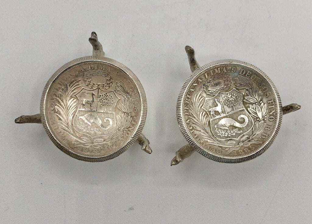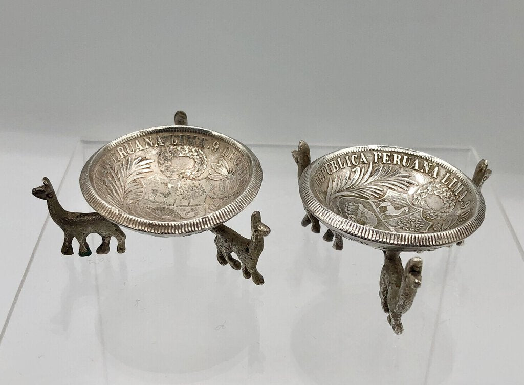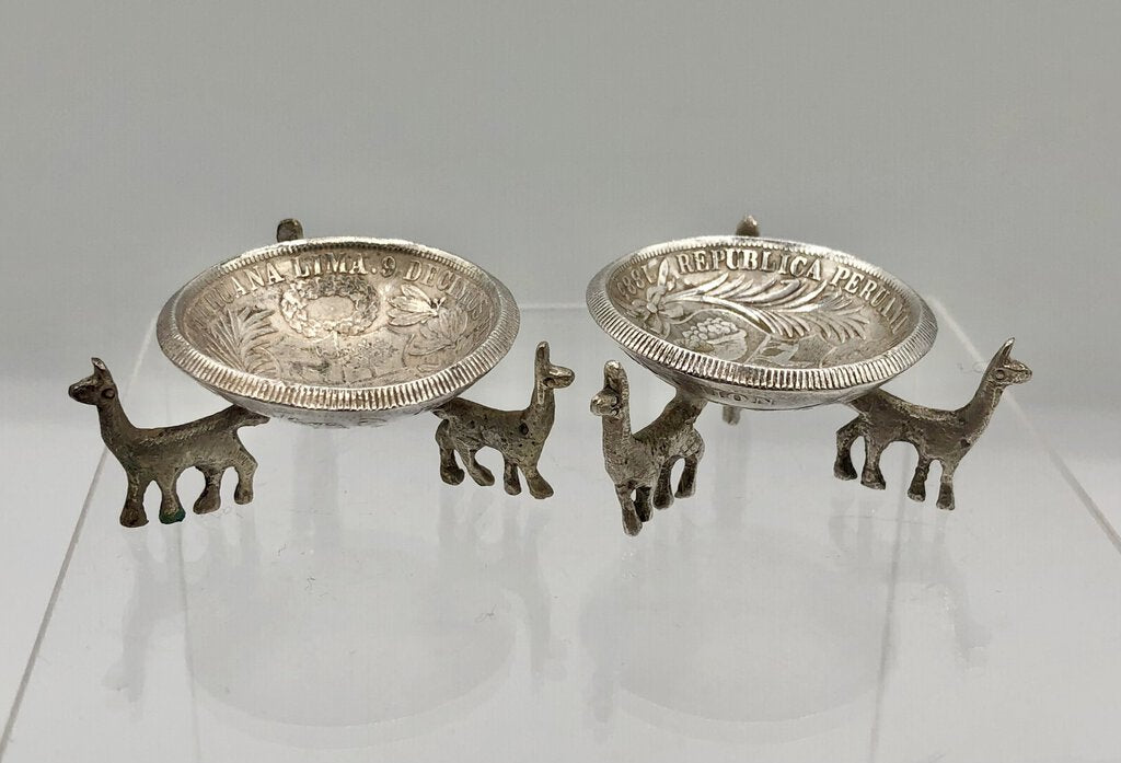 Pair Peruvian .925 Figural Coin Salt Cellars /b