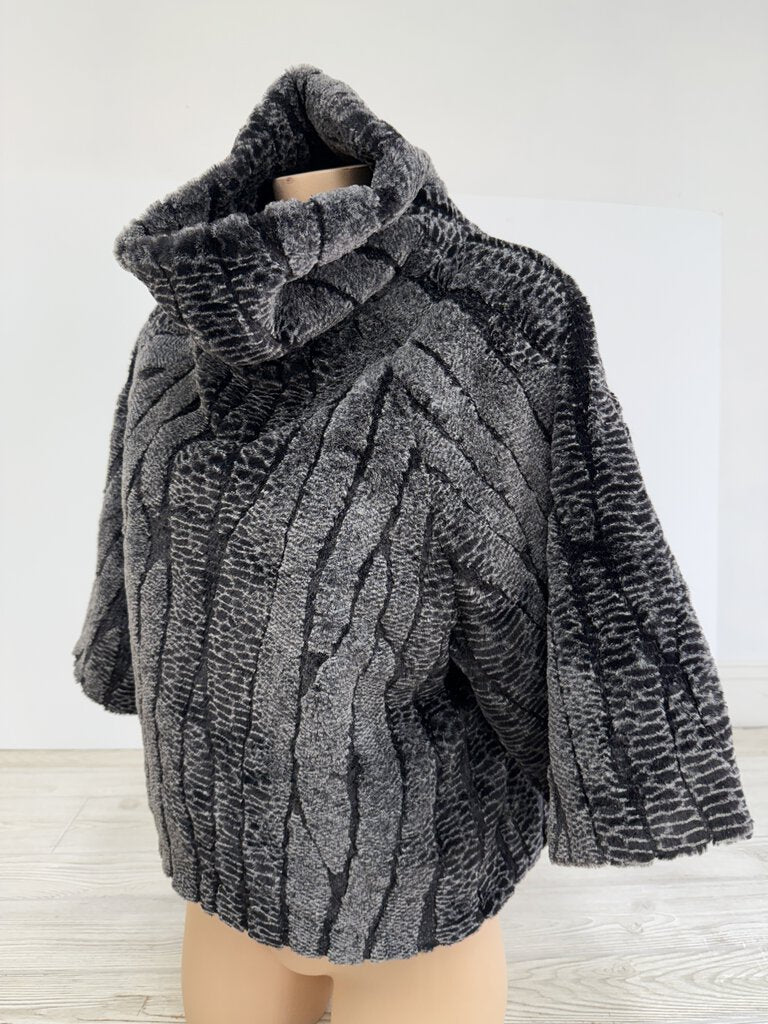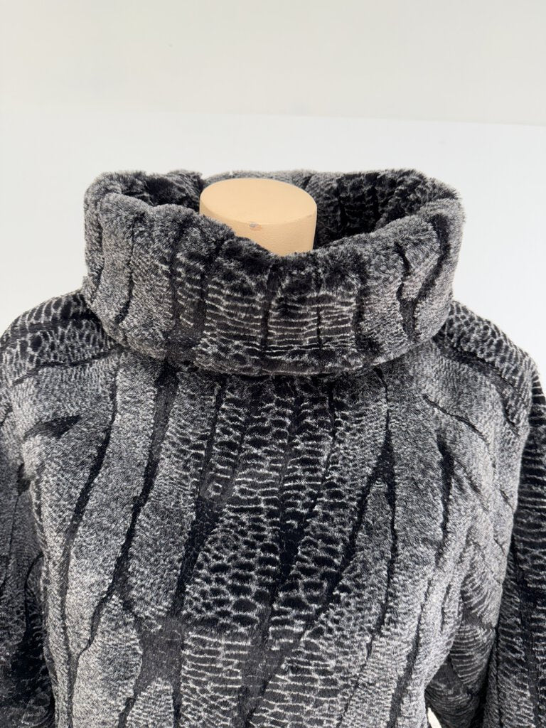 New with Tags Pandemonium Seattle Pand Faux Fur Turtleneck Sweater size small/medium. Plush velour fabric, with a heavy satin lining for warmth in a Black/Silver Gray color. Luxurious feel to the touch, sharp looking for a night out in the cold.