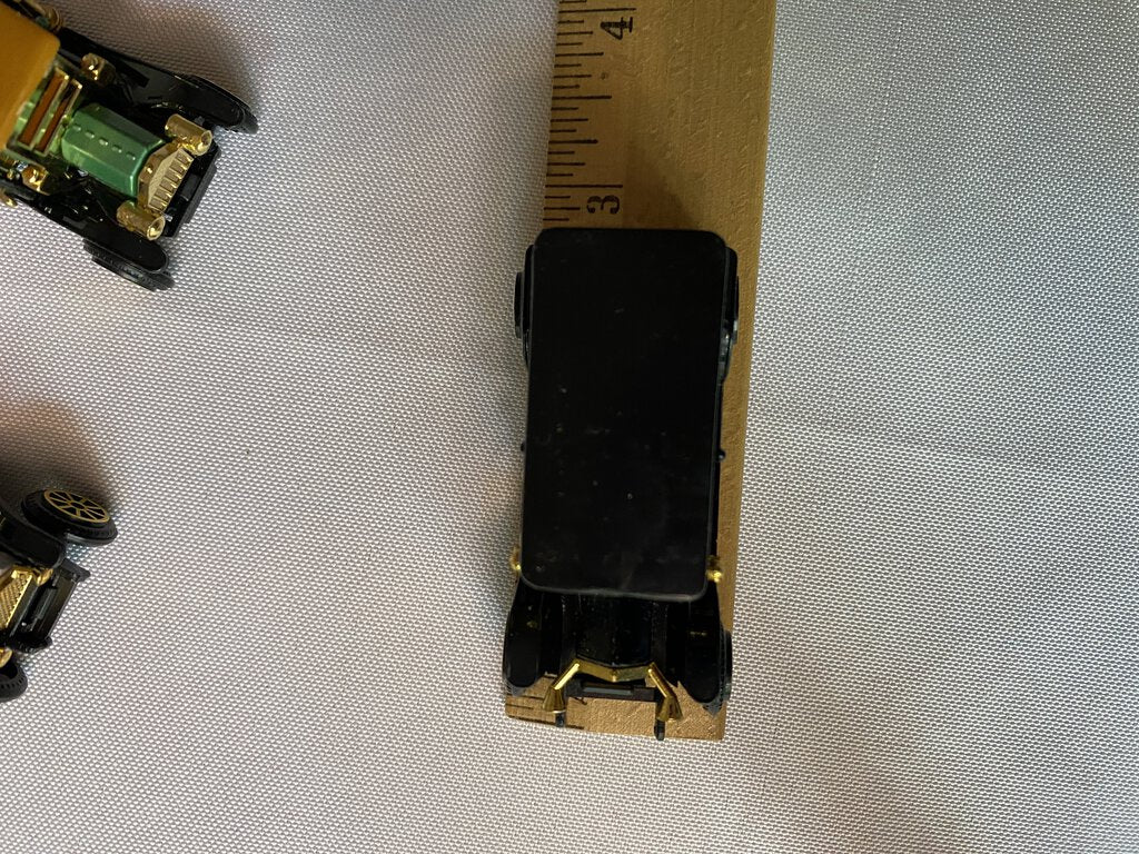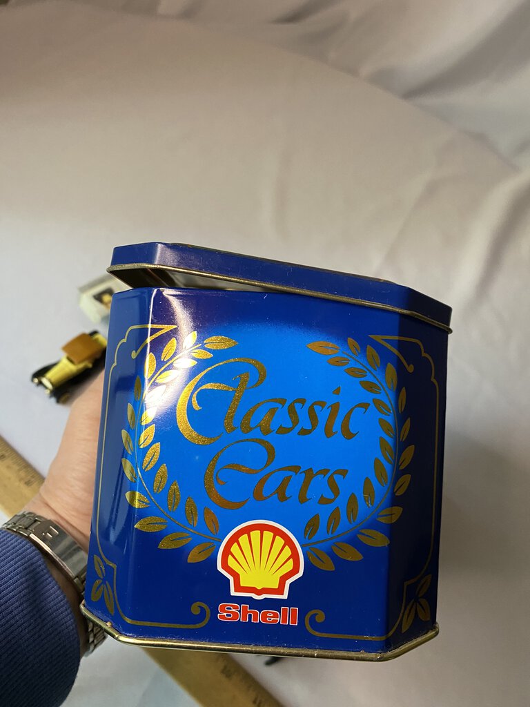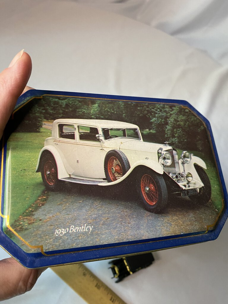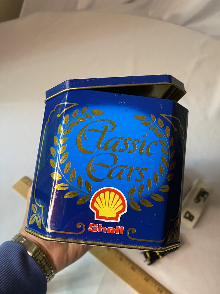 Sweet collection from Readers Digest Collection of 6 1/64 die cast antique cars in original cardboard boxes plus storage tin. Set of 6 includes:Pierce Arrow No. 302, Packard No.306, Ford Model T No.204,Simplex No. 305, Oakland No. 303, Peerless No. 211. All cars and cardboard boxes are clean with no damage. Classic Cars Tin Storage Box Hinged Lid included.