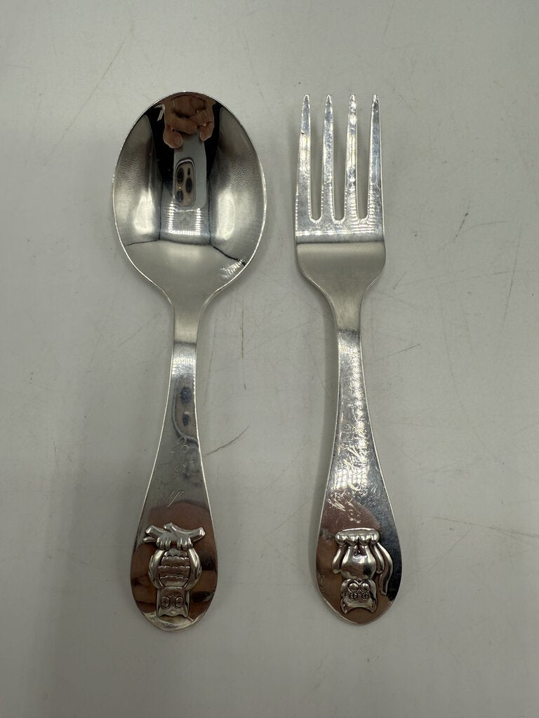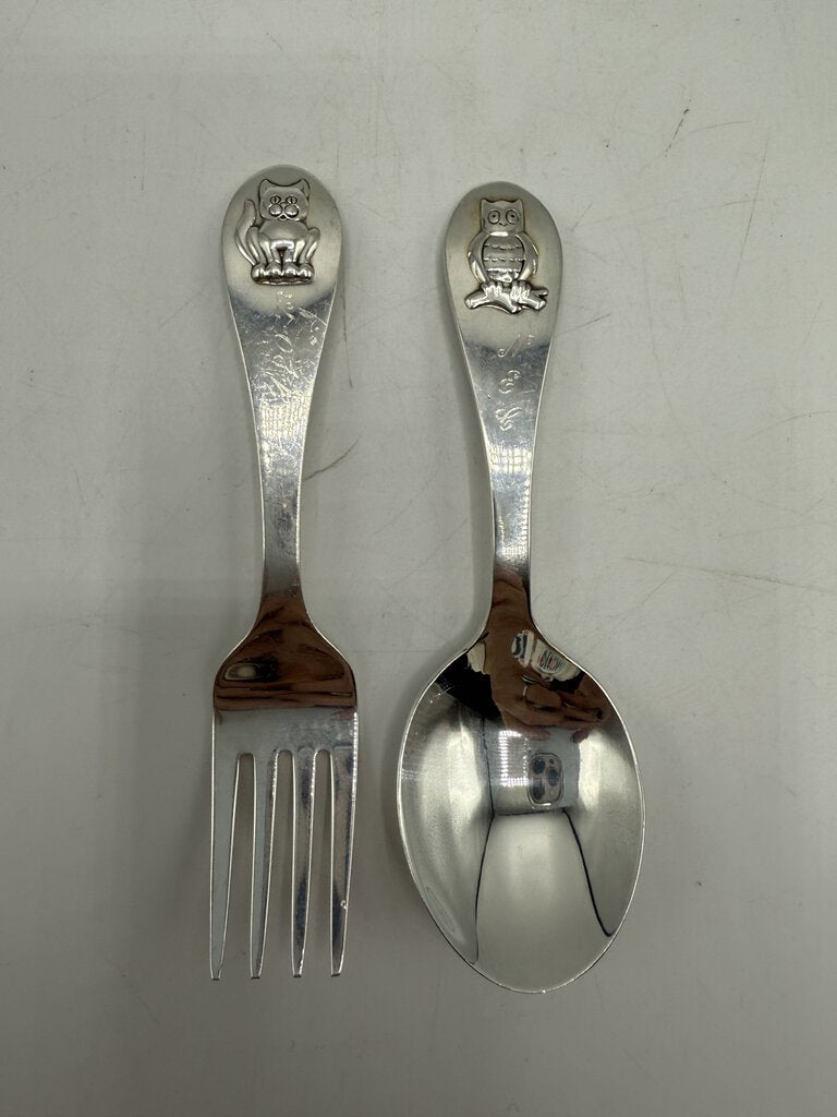 Reed & Barton Baby Spoon & Fork Owl & Kitty Cat /ro