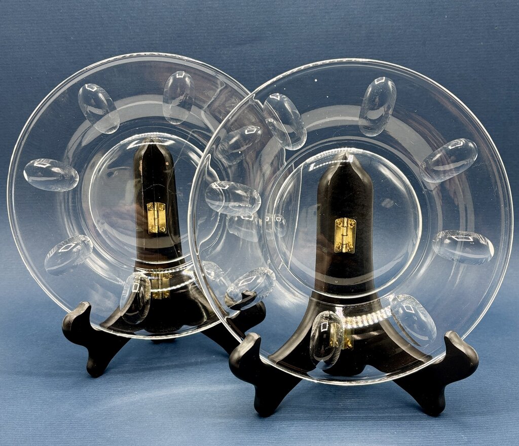 Lovely. Set of 2 Royal Leerdam Queen Julianna 7” Salad Plates. This pattern has been discontinued, so this is a rare find. The plates have a beautiful cut thumb print pattern on the underside of the rim. The plates are pre-owned but show no chips or cracks.