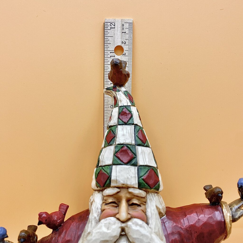 This beautiful Jim Shore Heartwood Creek 11" Santa is in good pre-owned condition. The little blue bird on Santa's hand is missing its tail feathers (please refer to the photos), but it does not take any beauty away from this piece! Approx. measurements: 11" H x 8" W x 5.5" D