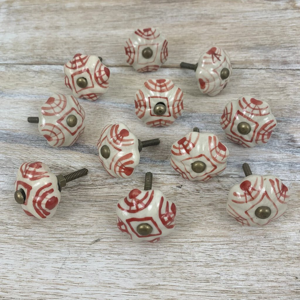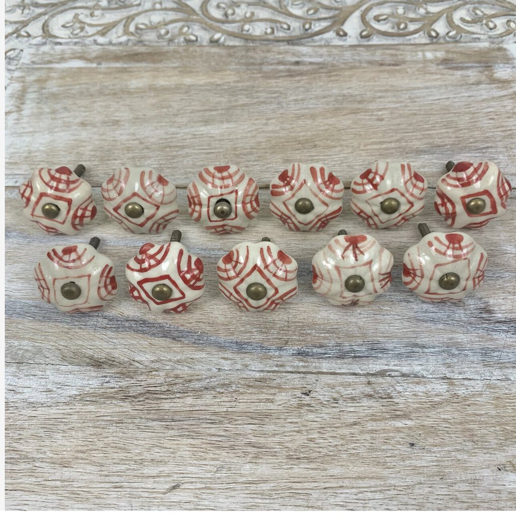 Set Of 11 Unique Vintage Hand-painted Ceramic Knobs /cb
