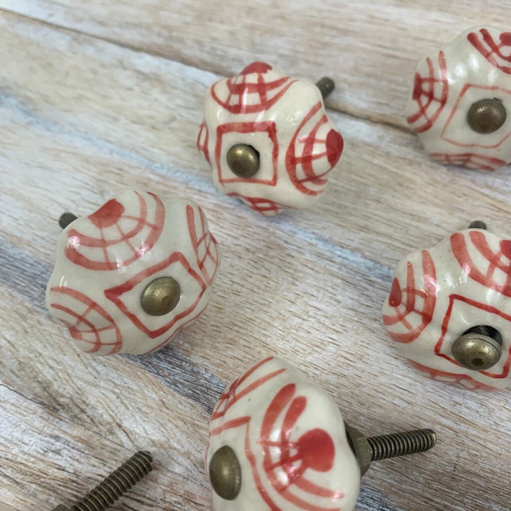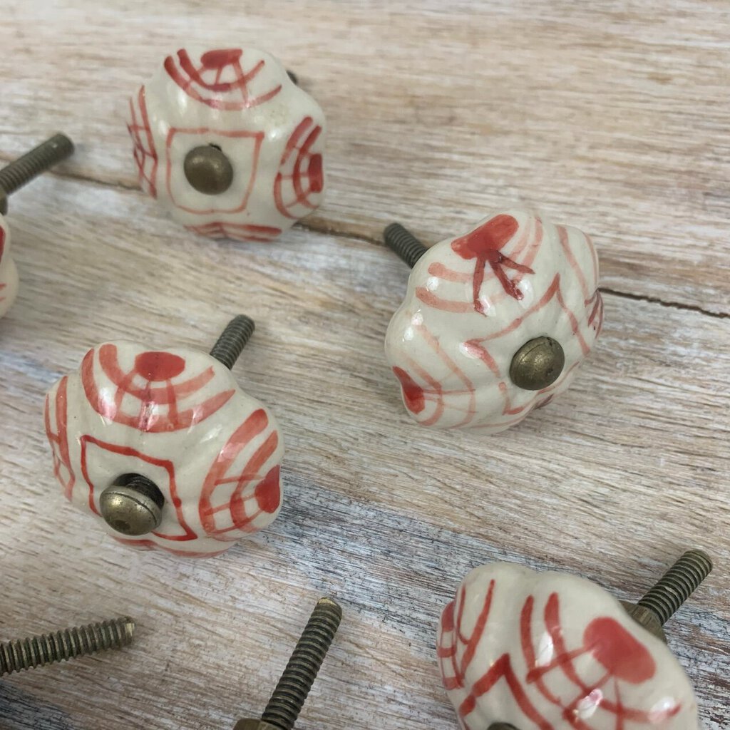 Fun and unique set of 11 vintage hand-painted ceramic cabinet/drawer knobs. Very vintage Anthropologie in style! The knobs were estate-owned and are in excellent condition. No chips or cracks found. The knobs measure 1 7/8” in length and 1 3/8” in diameter. Please carefully review the photos for condition details.