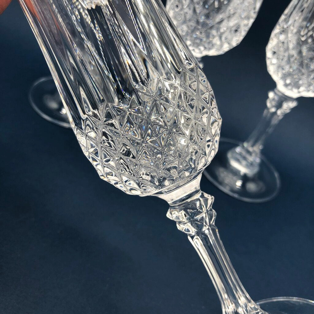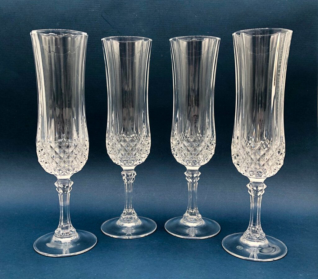 Set of 4 Cristal D’Arques Durand Longchamp Champagne Flutes /b