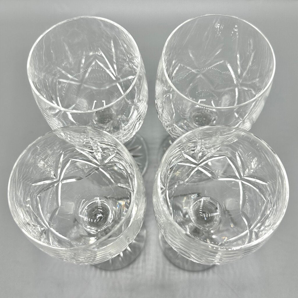 Set of 4 Vintage Bohemia Crystal Crystalex 6 3/4” Fan Cut Crystal Wine Glasses BOC58 /cb