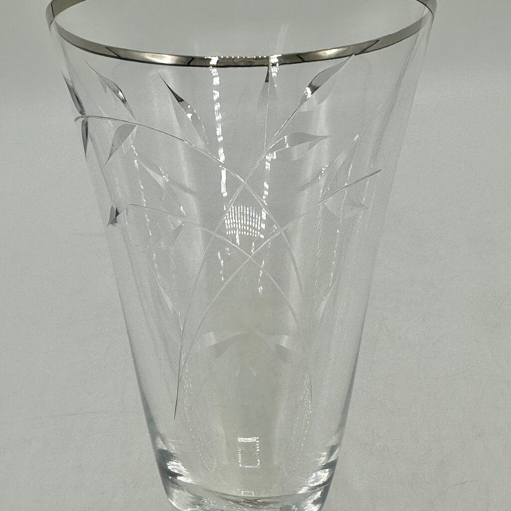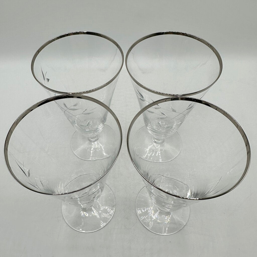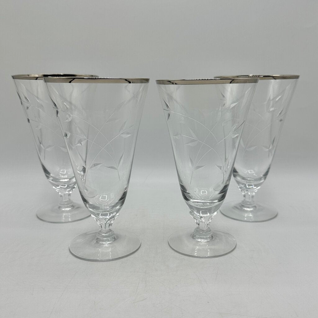 Set Of 4 Vintage Fostoria Bridal Belle Iced Tea Glasses Cut Leaves Platinum Trim Stem 6072 /cb