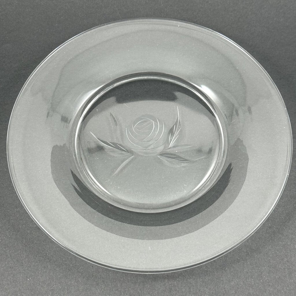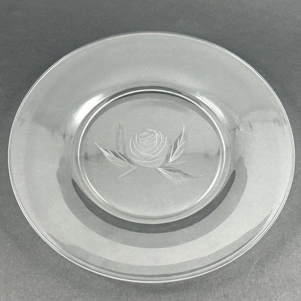 Set of 4 vintage Rose by Fostoria 71/2 inch salad plates. An elegant, timeless pattern, very pretty for the Spring or Summer table. Introduced in the 1950s and retired in 1973. In very good vintage condition. They show light age and use appropriate wear. Please see photos for details.