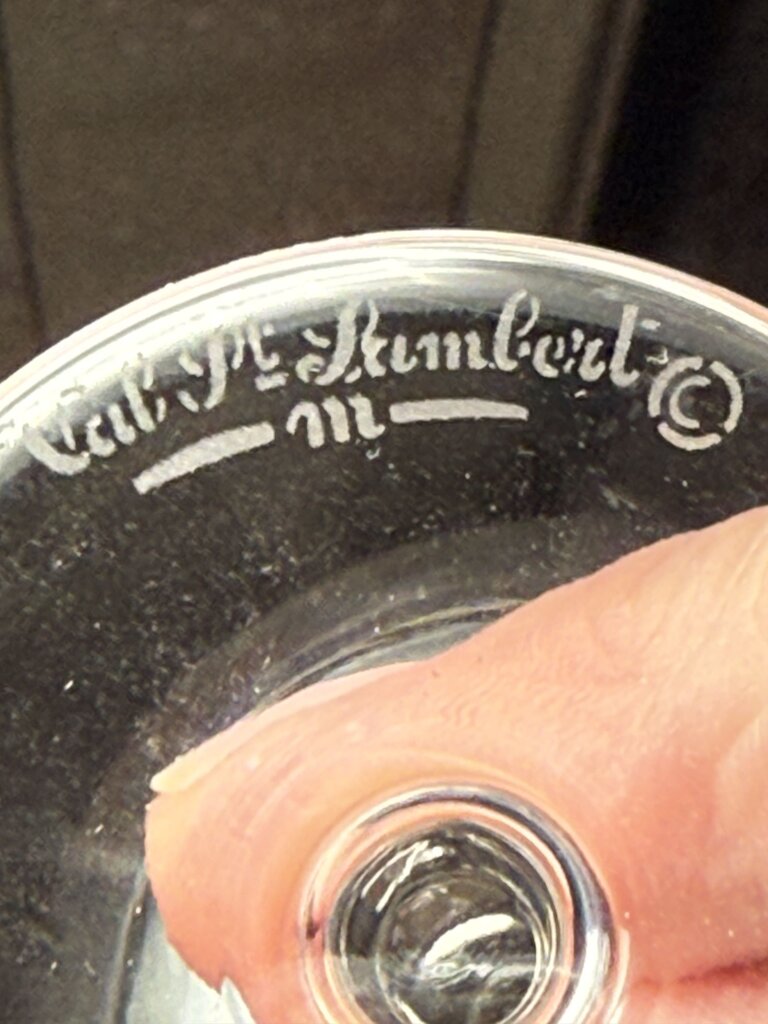 Set of 8 matching Val St. Lambert Clear Crystal Cordial stemmed glasses. Glasses measure 4” tall and have a comfortable one ounce capacity. No chips, cracks or cloudiness in glass.