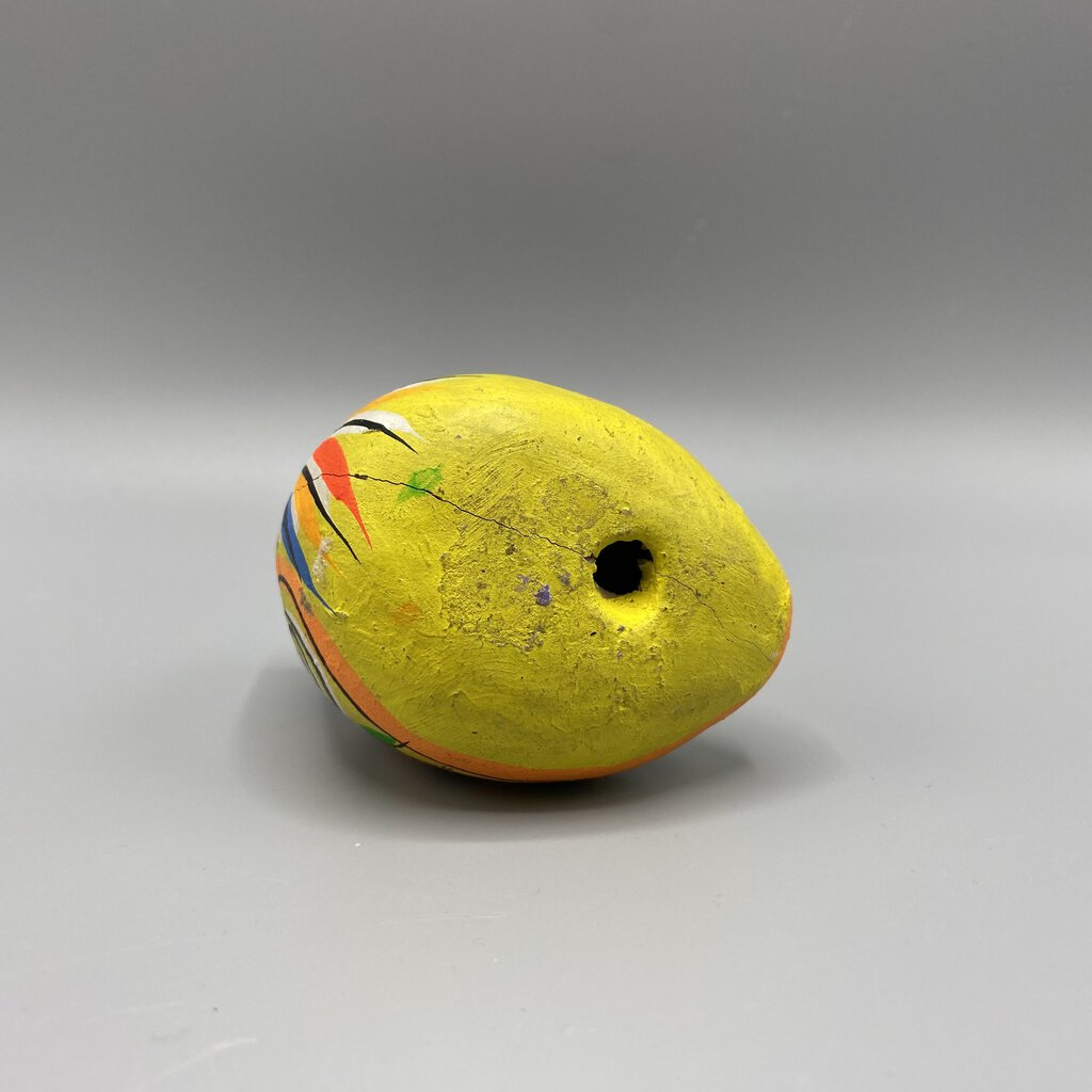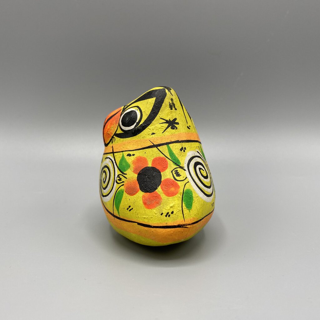 This fun, bright bird is in good pre-owned condition. It does have a crack down the side, but it is small does not hurt the structure of this figurine.