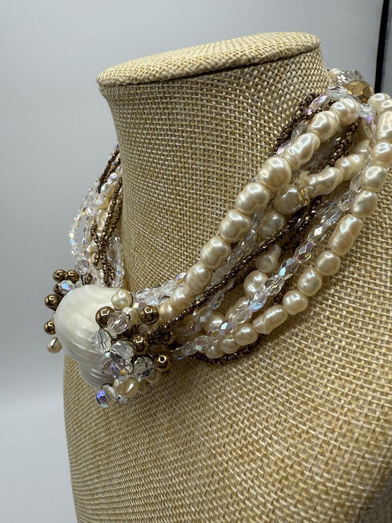 Statement Choker Necklace Seed Pearls Crystals Sea Shell Set /ro