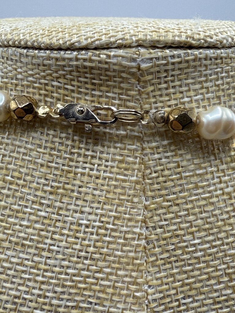 This Attractive Statement Necklace and Earring set are made of seed pearls, iridescent crystal beads, gold tone beads and a sea shell center. Lobster claw clasp. Earrings are clip on. Choker style necklace measures 14” long, earrings are clip-on 1.5” long by 1” wide.