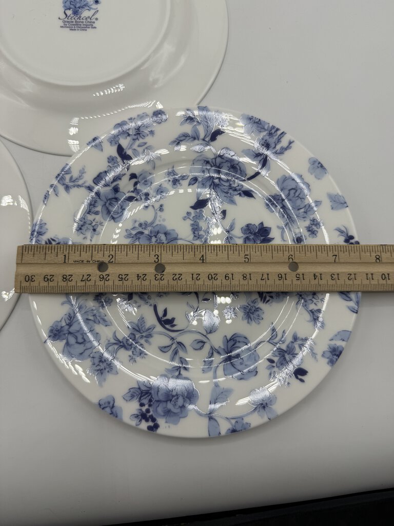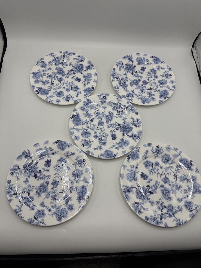 Stechcol Gracie Bone China Blue & White Floral Lunch Plates set of 5 /rb