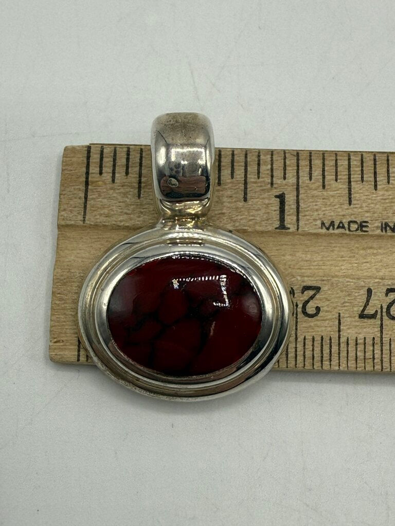 Sterling Silver Oval Pendant Slide w/Red Jasper Stone 10 Grams /ro