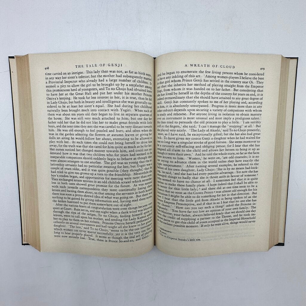 The Tale Of Genji-A Novel in Four Parts by Lady Murasaki, translated from the Japanese by Arthur Waley. Published by The Literary Guild in 1935, hardcover, 743 pages. The Tale of Genji, written by Lady Murasaki Shikibu in the early 11th century during Japan’s Heian period is often considered the world’s first novel. It follows the life and romantic exploits of Hikaru Genji the son of an emperor, who is demoted to commoner status due to political reasons. The novel explores themes of impermanence, love, social hierarchy, and the fleeting nature of beauty and power. The book is in very good condtion, the covers show light shelf ware and the spine has faded a little over the decades but the binding is strong, there are no loose or torn pages. The pages are clean and unmarked. Please carefully review the photos for condition details.