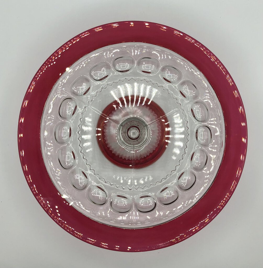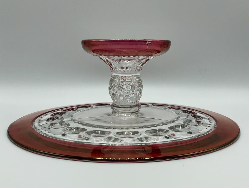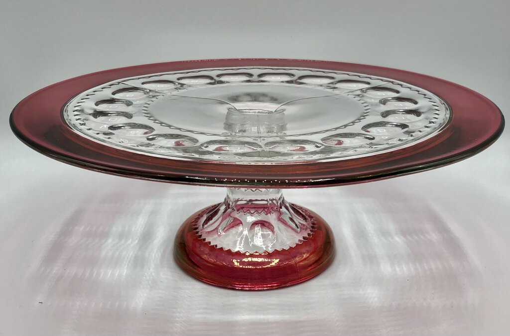 Tiffin Franciscan Kings Crown Cranberry Flashed 12” Cake Plate Stand /b
