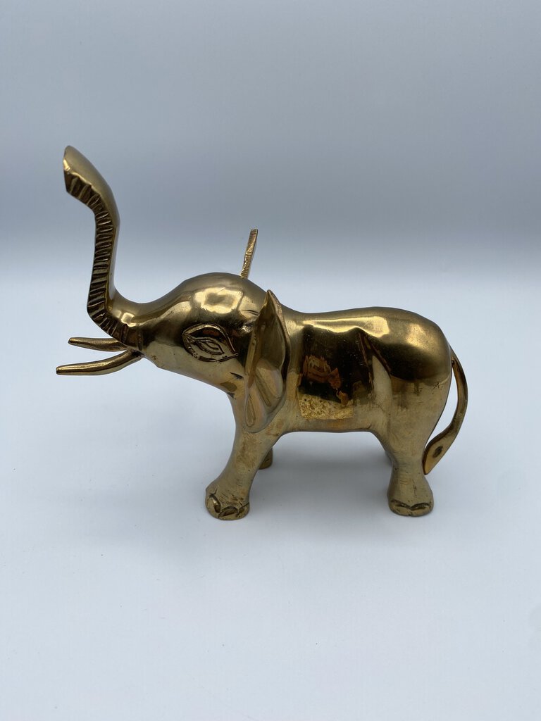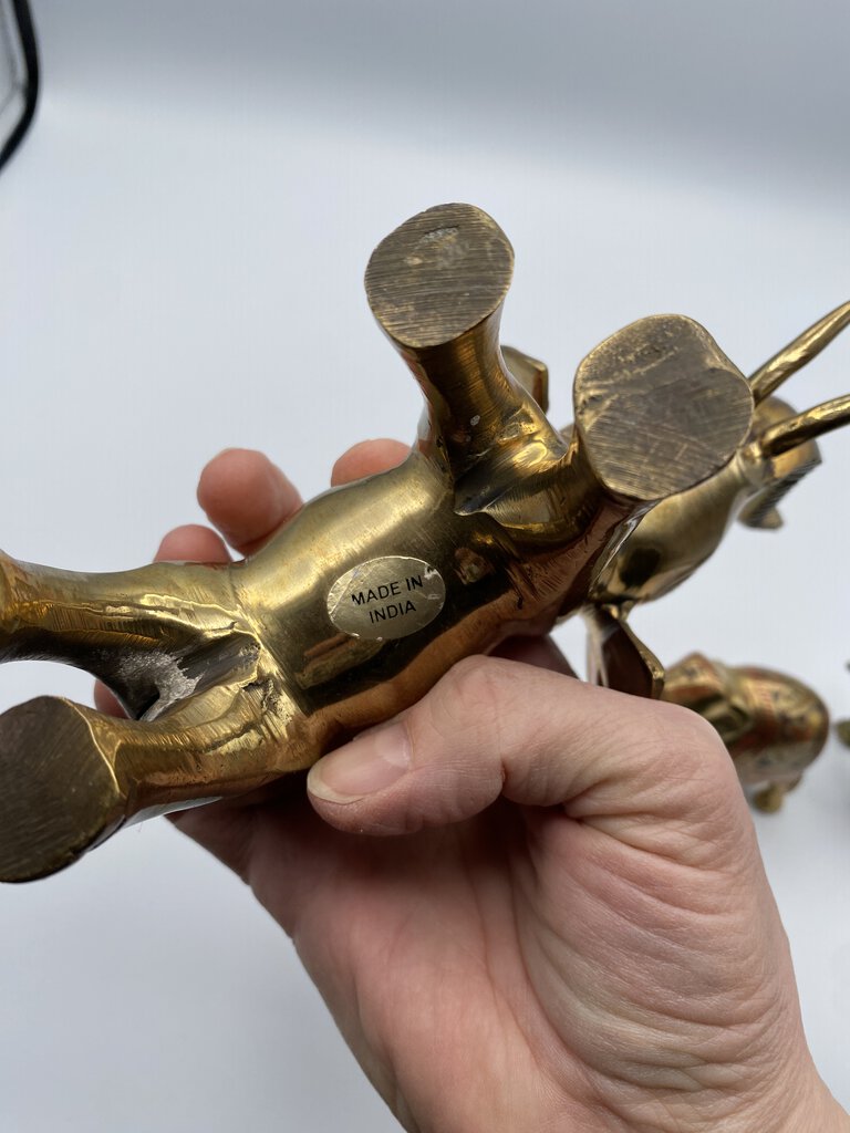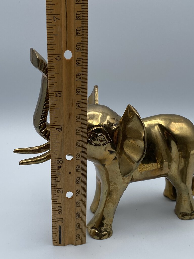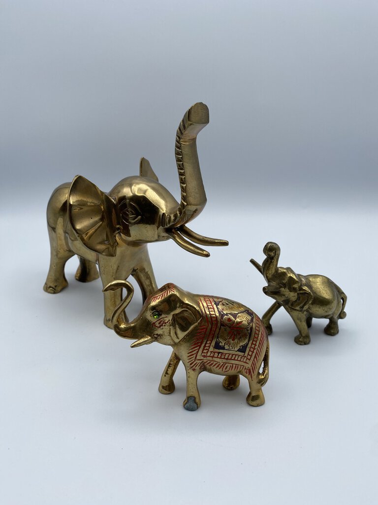 Vintage lot of 3 brass elephants with their trunks up for good luck. Elephants are made of solid brass from India. They measures in length 7”, 4” and 3”. Charming set for your decor.