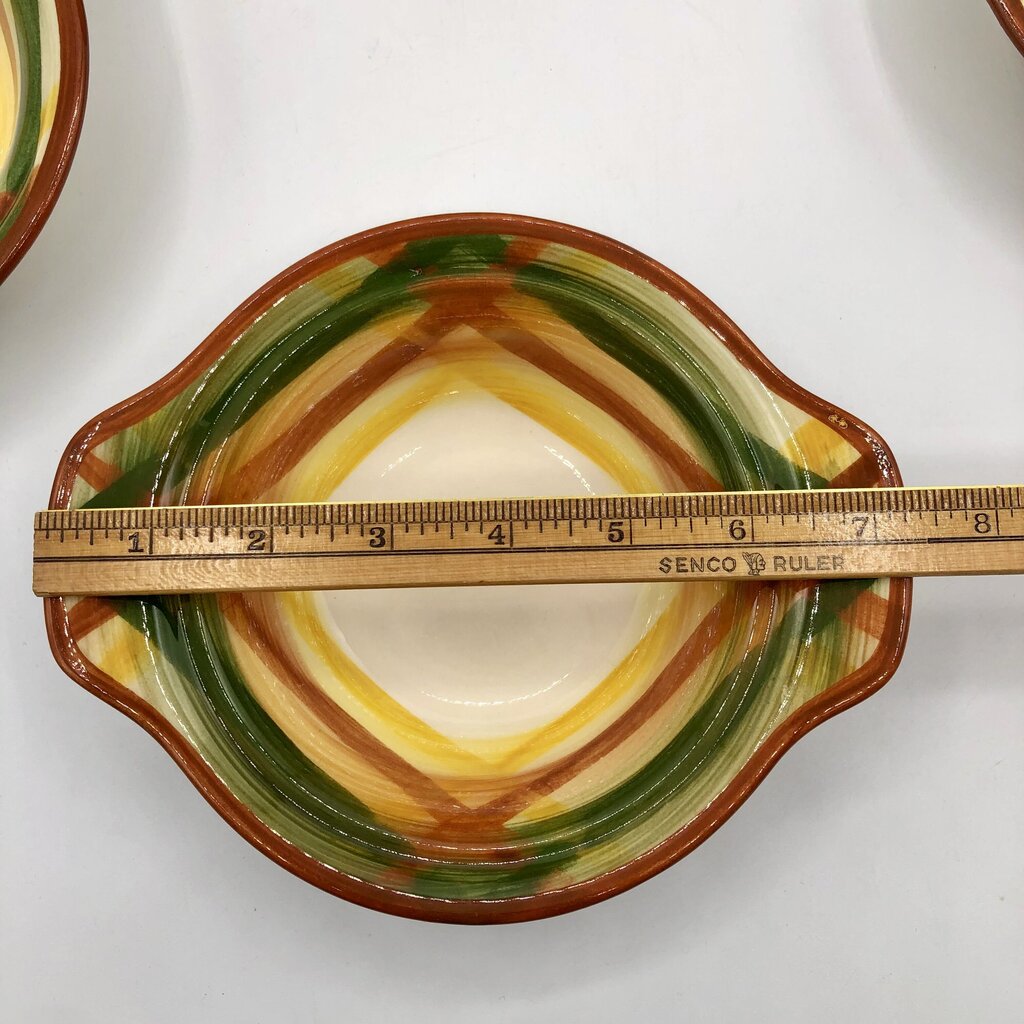 The set includes three 7 1/4” x 6 1/8”bowls with handles and one 8” cereal/ soup bowl.