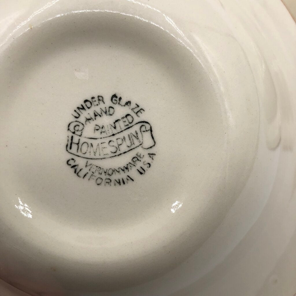 This Vernonware Homespun bowl set of 4 was made in California by Vernon Kilns, pre 1958.