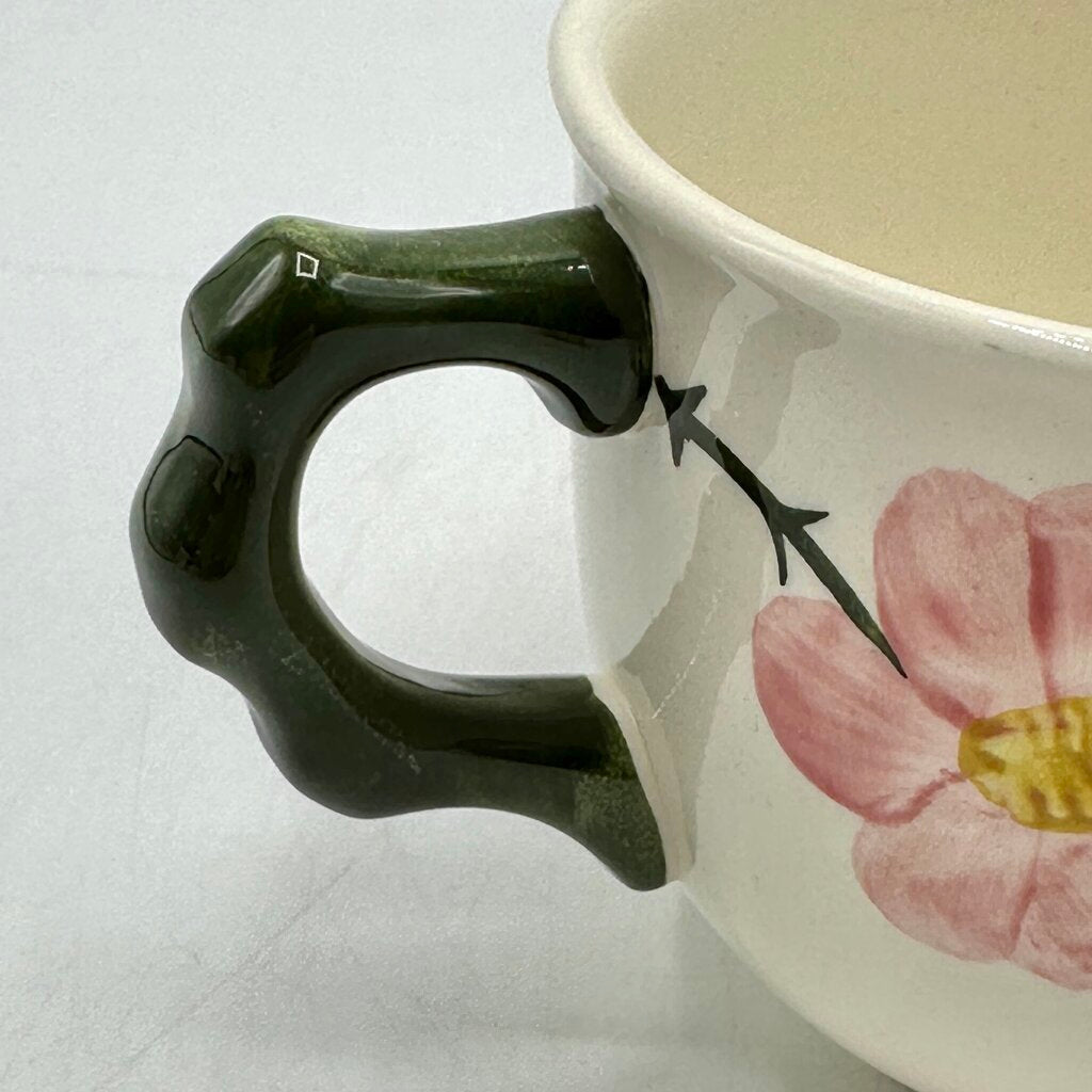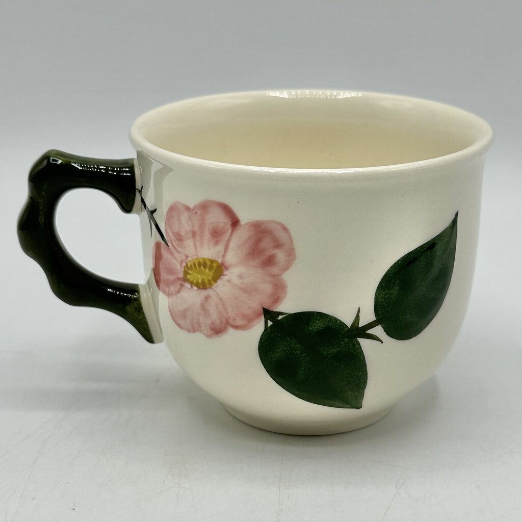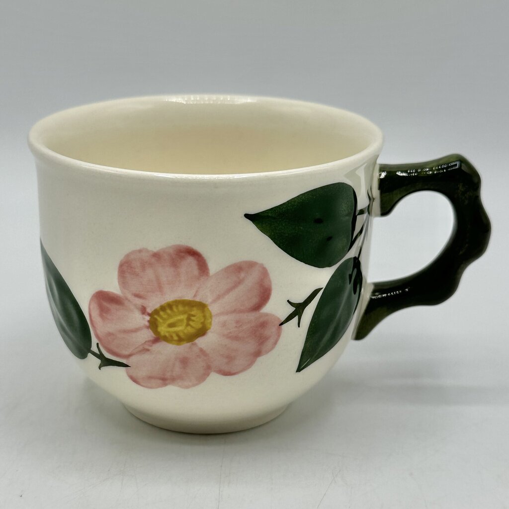 Four Villeroy & Boch Wild Rose fine china flat cup and saucer sets. Made in Germany. The lovely hand painted Wild Rose pattern was a popular generational favorite from 1968 until 2018. The cups have a 3 1/4” diameter and are 2 3/4” tall, the saucers measure 6 1/4”, they are in very good vintage condition, no chips, cracks, crazing or repairs.