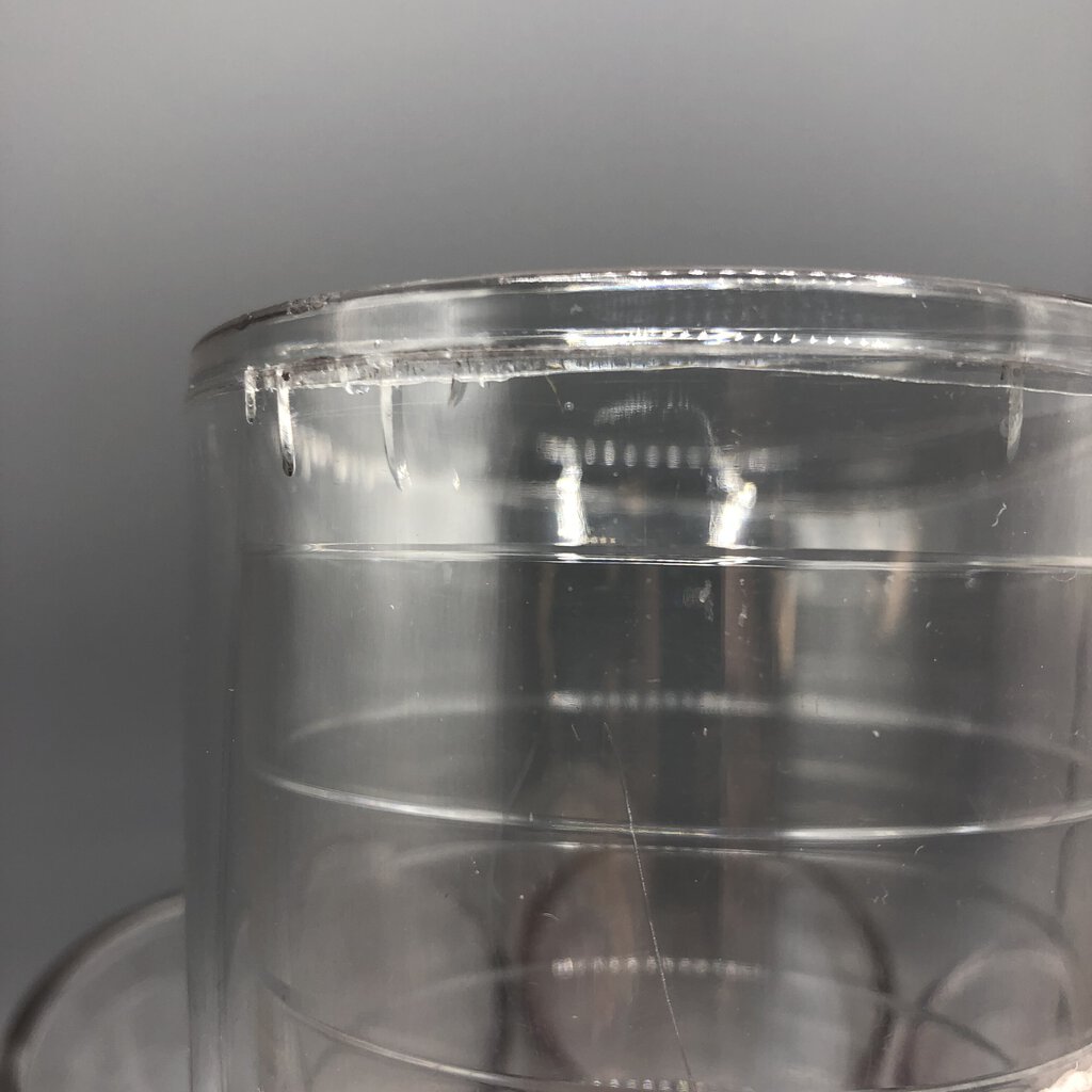 Three of the cups show some wear at the lip. I have pictured the worst. One cup is like new.