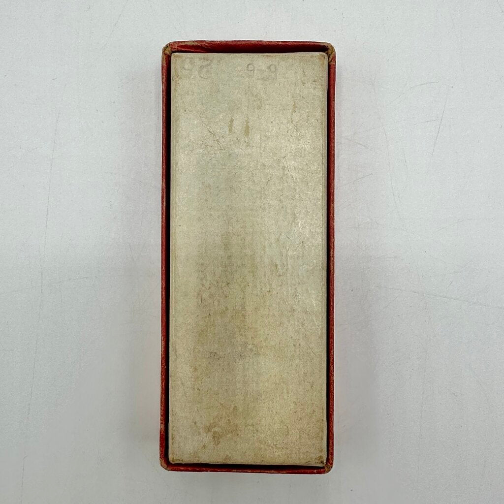 Vintage “Pa’s T Puzzle”, a classic four piece wood brain teaser made by Wm F. Druecke & Sons of Grand Rapids MIchigan in the 1940s. The objective is to assemble the four wooden shapes into a perfect “T” shape, a deceptively challenging task. The puzzle is in very good vintage condition with minimal wear. The original box shows age, some staining and light storage wear.