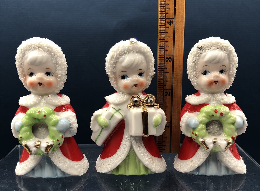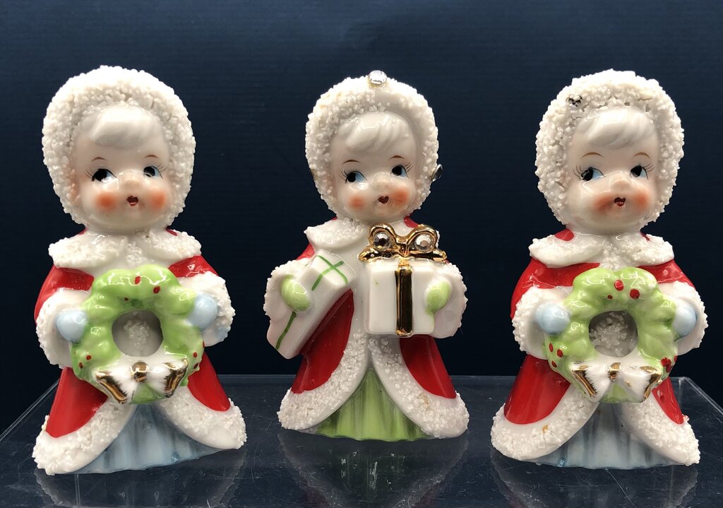 Vintage 1950’s Trio of Enesco Christmas Girls Figurines /b