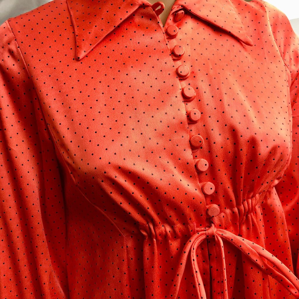 Vintage 1970s Blanche Orange & Dotted Maxi Dress/ House Gown /b