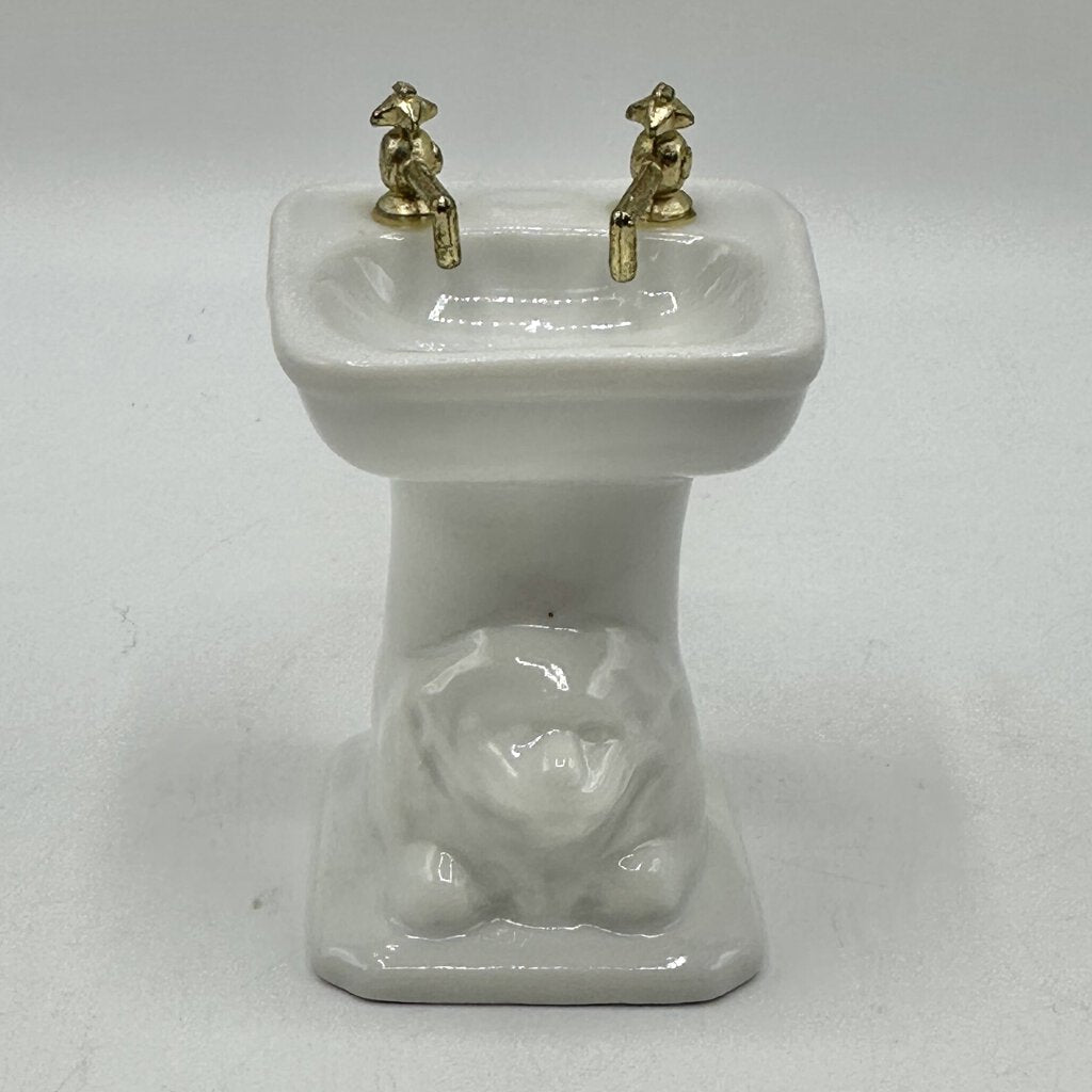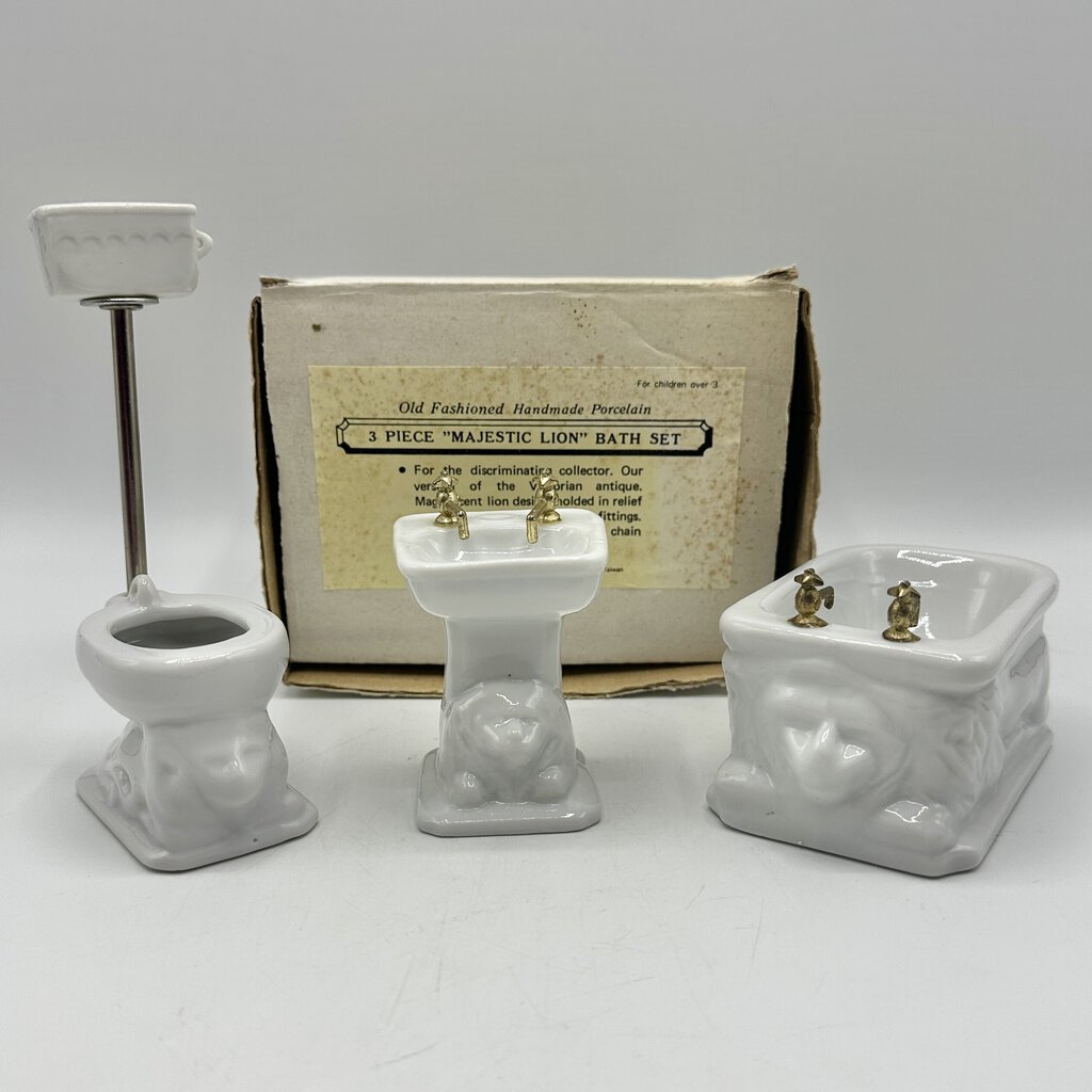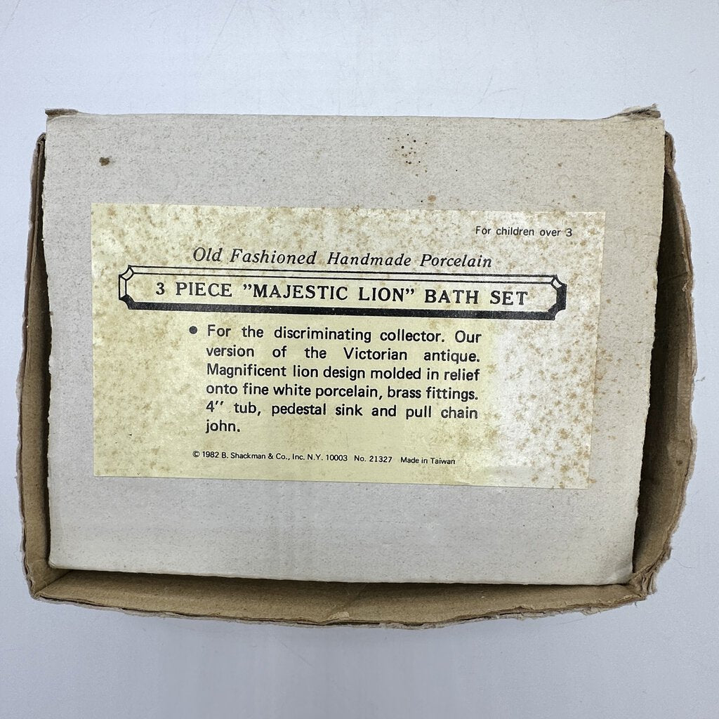 Vintage 1982 Shackman & Co MAJESTIC LION 3 Piece Dollhouse Miniature Porcelain Bathroom Set /cb
