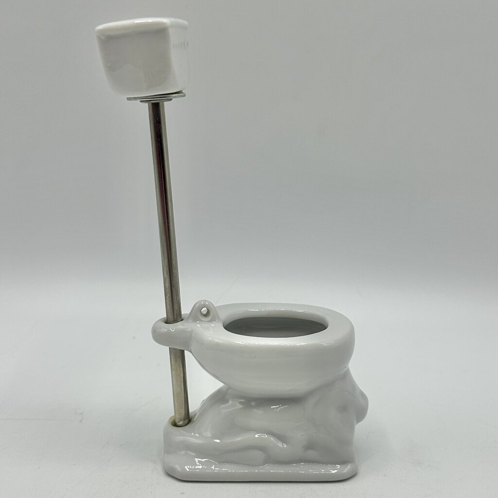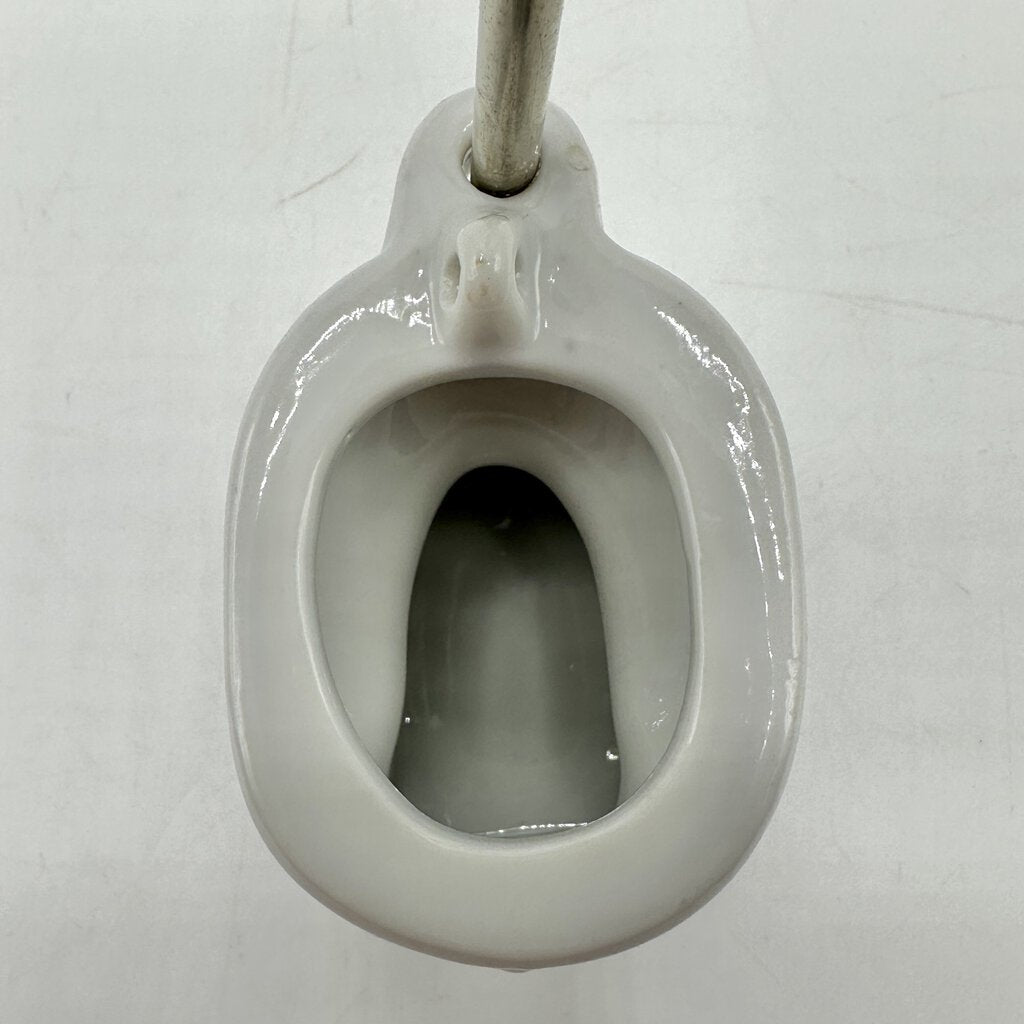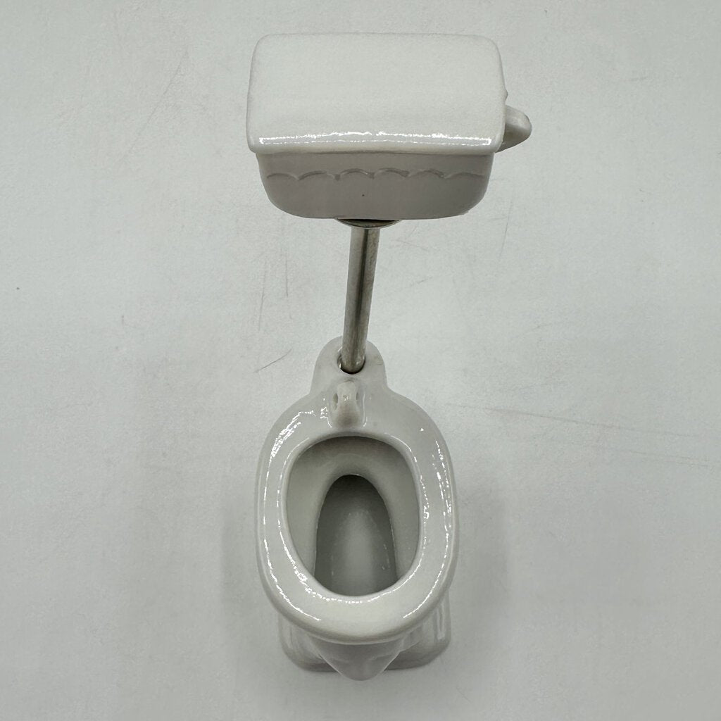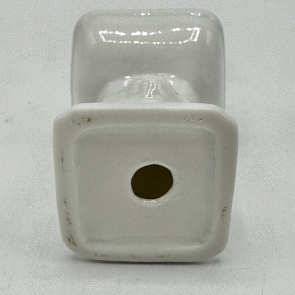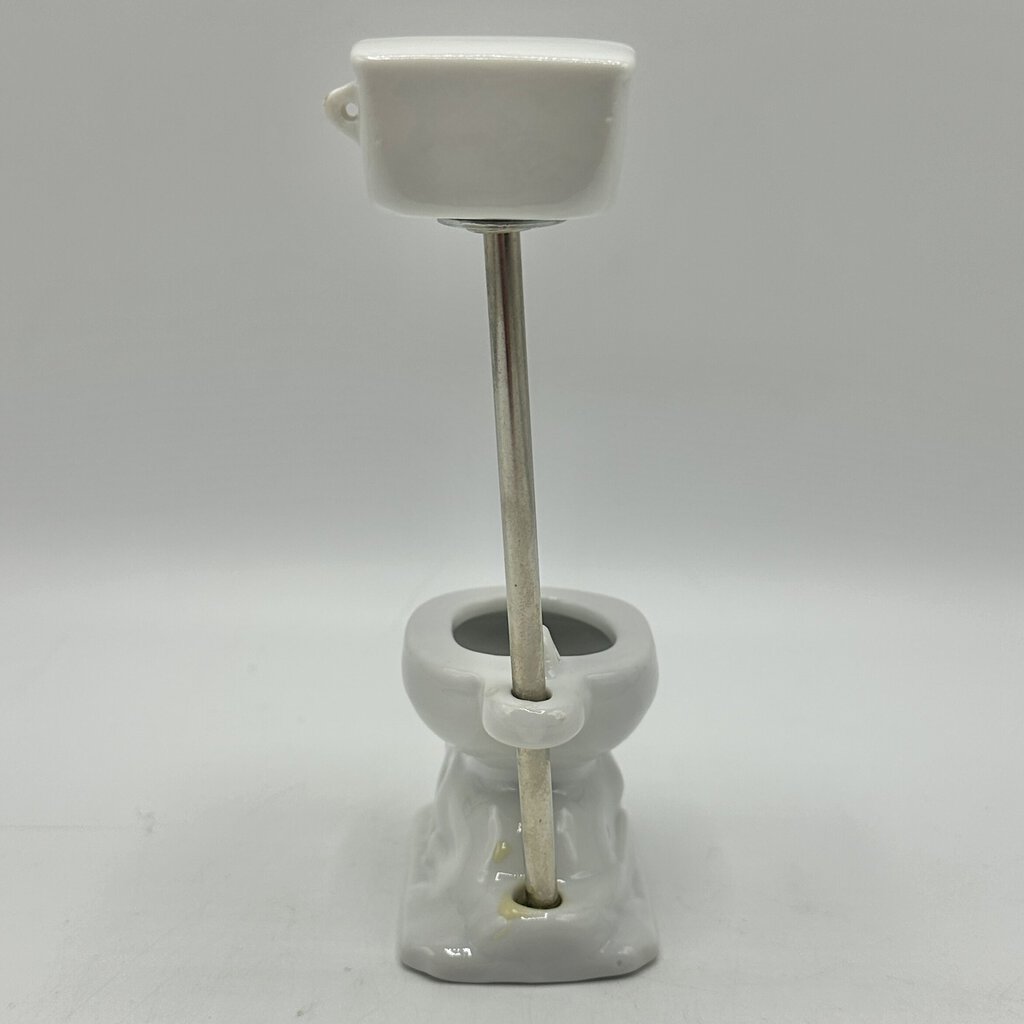 Vintage B.Shackman & Co 1982 3 piece white porcelain “Majestic Lion” dollhouse miniature bathroom set with original box. This set includes a tub, pedestal sink and pull chain toilet. Shackman’s version of a Victorian style set featuring a lion design molded in relief on fine white porcelain with brass fittings. The bathtub measures 4”x 2 1/2”, the sink 2”x 2 1/2” x 1 3/4” and the toilet 5 1/2”x 2 1/2” x 1 1/2”. Everything is in good vintage condition, the toilet is missing the lid and the pull chain and the tub has what appears as a chip on first glance but is a glaze slip. The box shows some age and storage wear. Please carefully review the photos for condition details and feel free to ask questions.