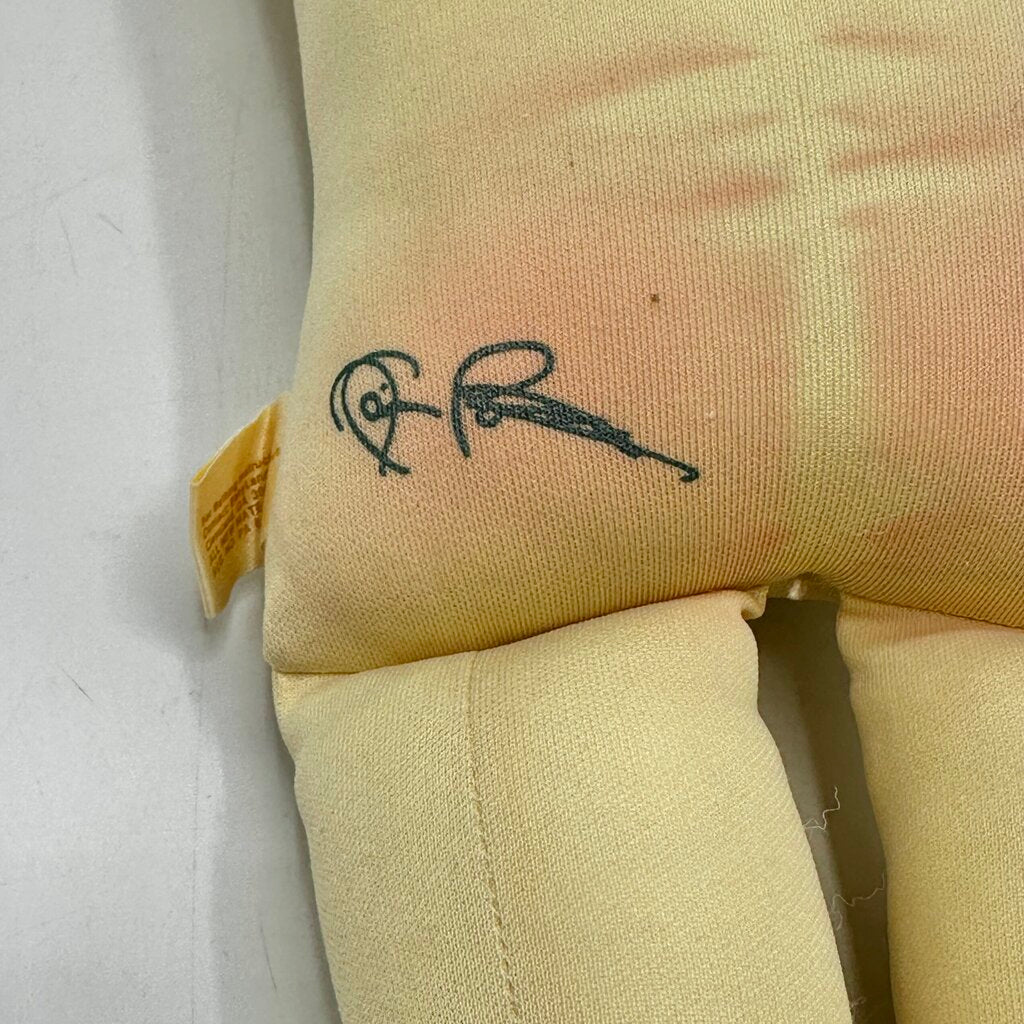 Vintage 1990 Xavier Roberts Cabbage Patch soft sculpture doll. She is 17” tall, has blonde curly yarn hair, and blue/green eyes. She is signed on her tush but has lost all clothes and paperwork.