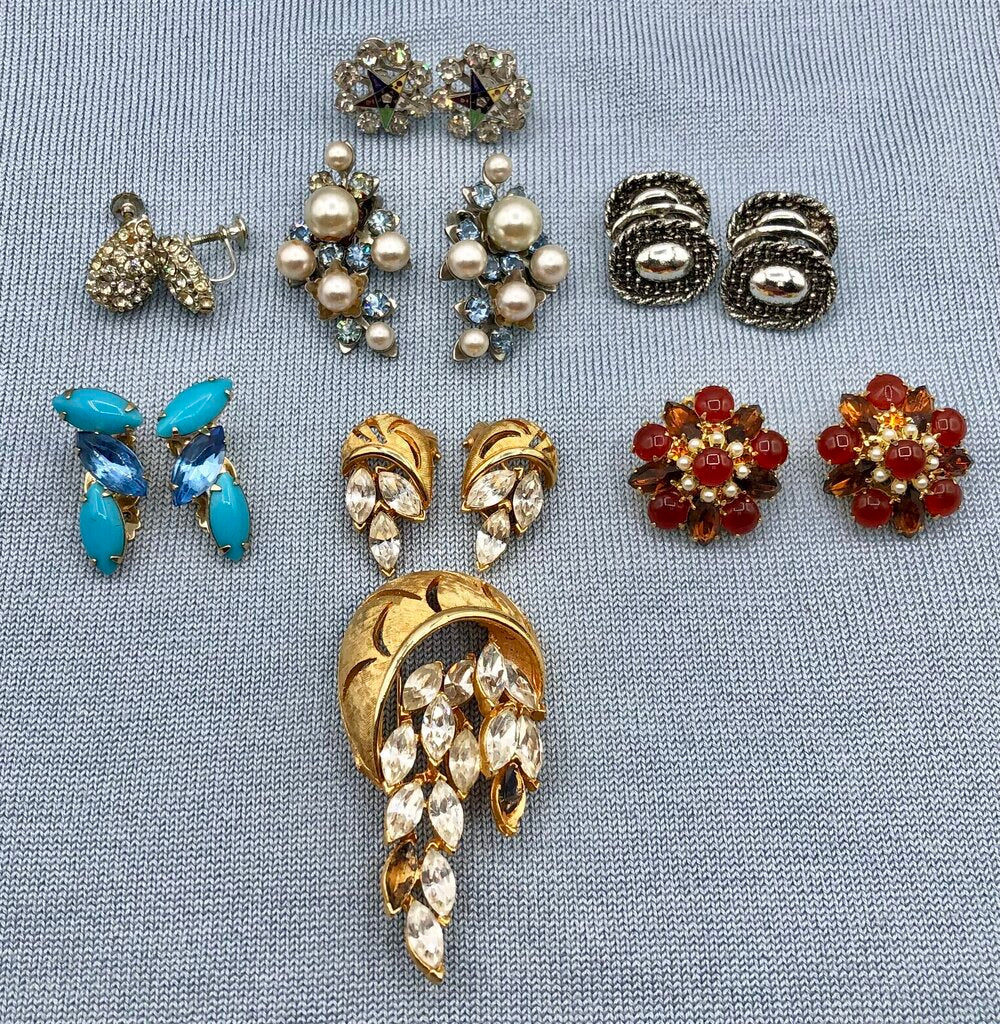 Vintage 8pc Lot of Clip Earrings & Brooch /b