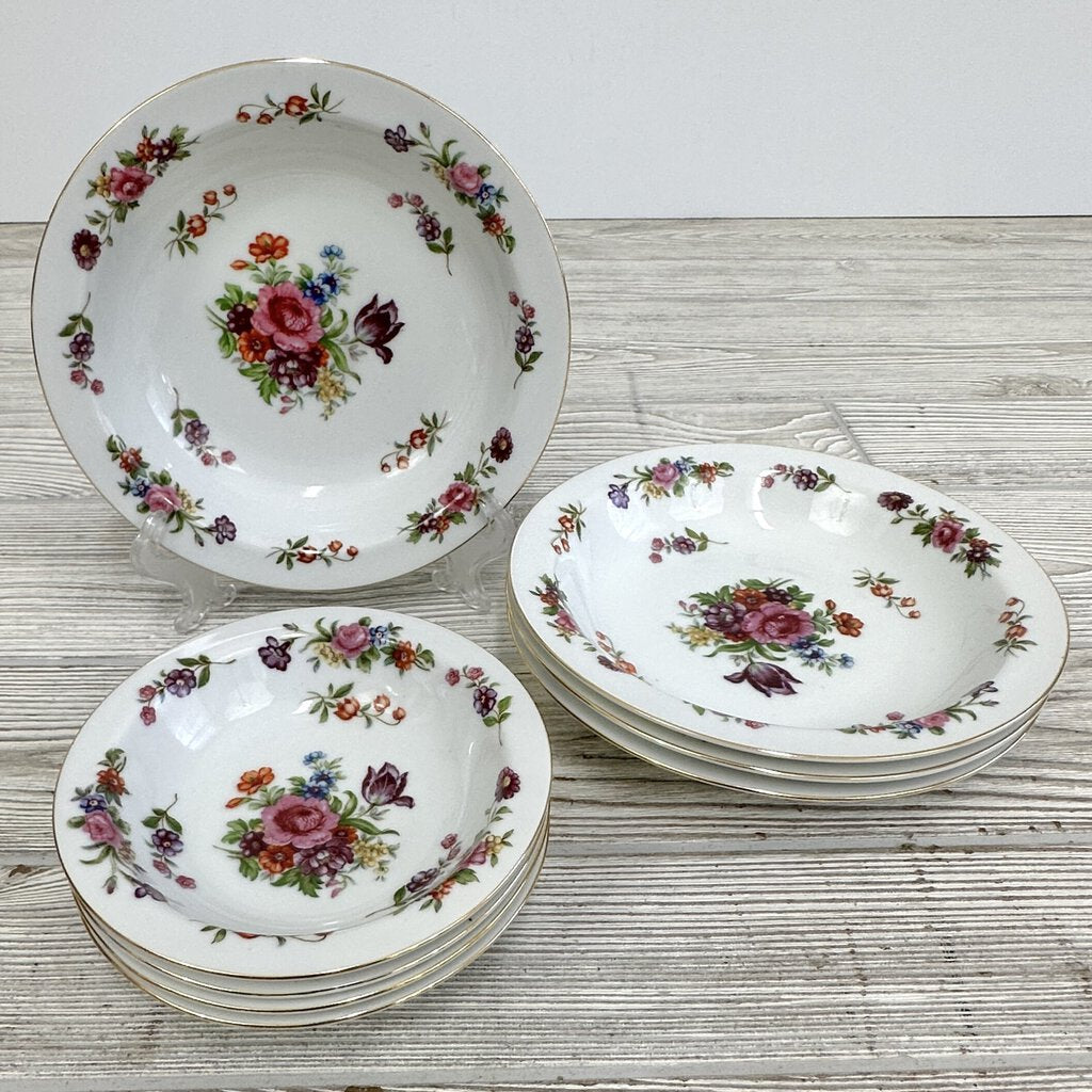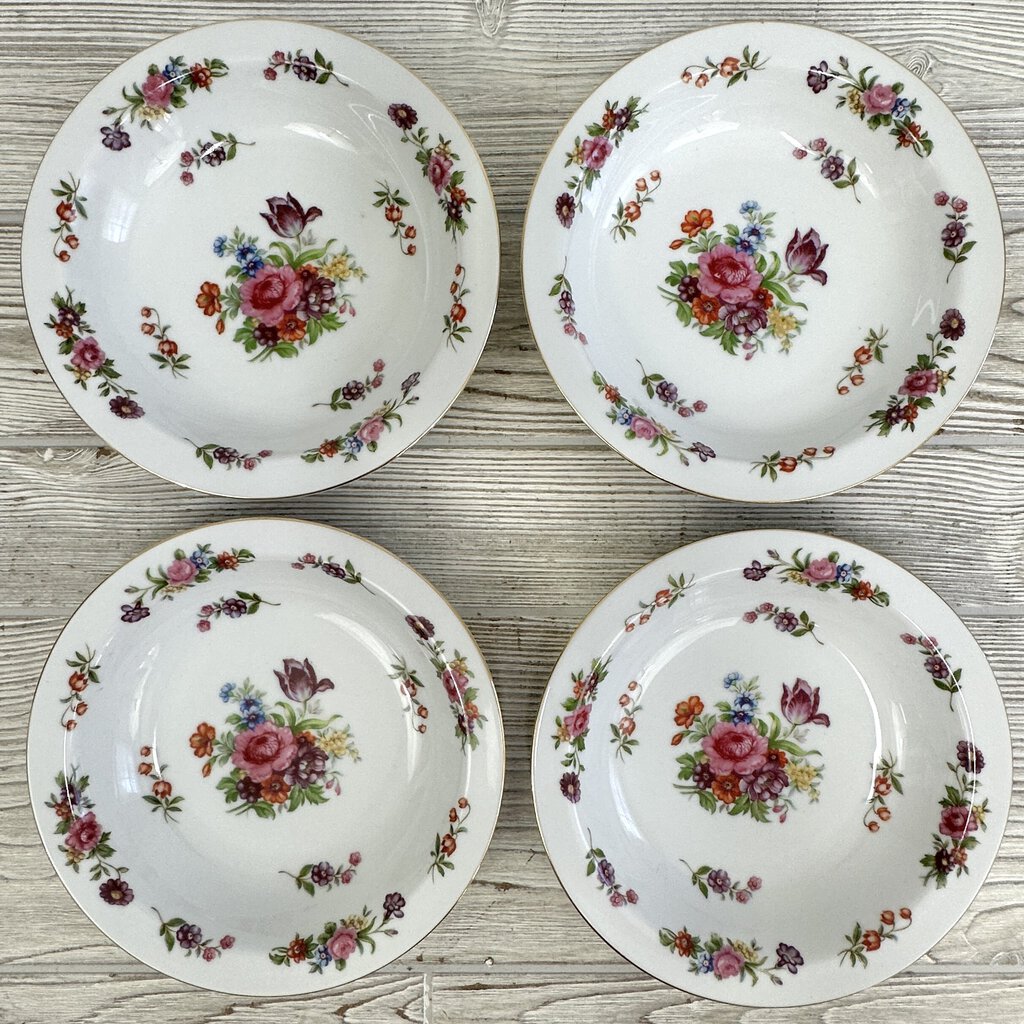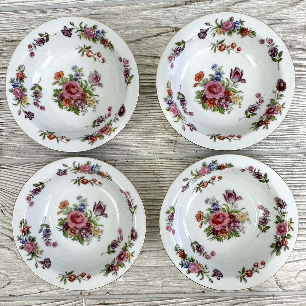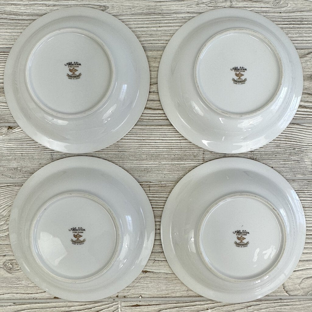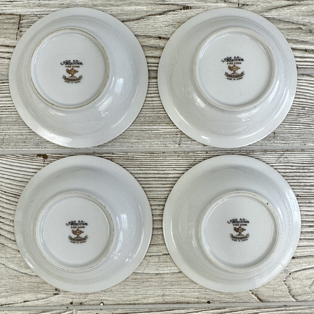 Vintage Aladdin Fine China Dresdenia Set of 4 7 3/4in Soup Bowls And 5 5/8in Dessert Bowls /cb
