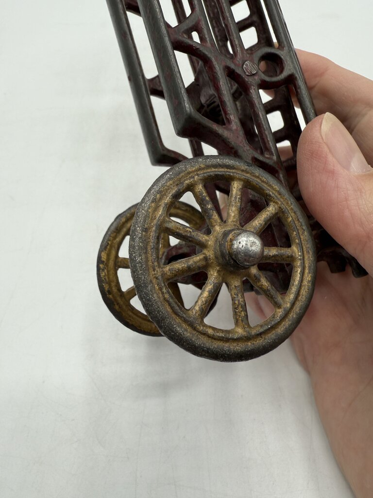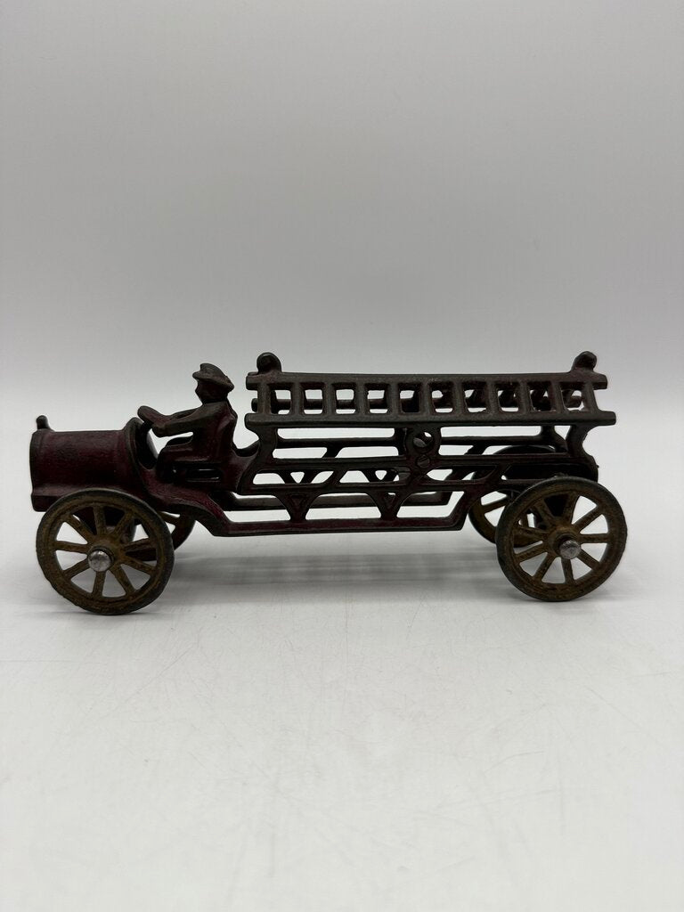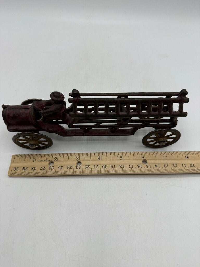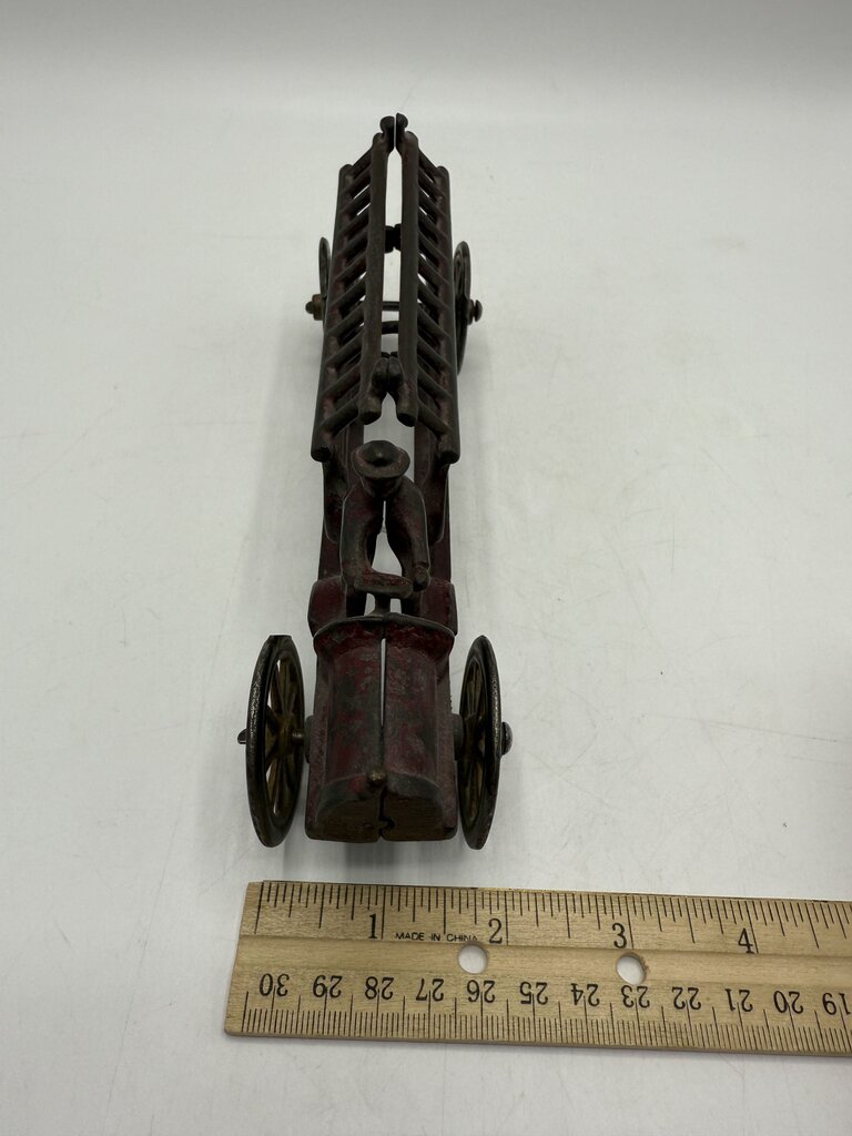 Vintage Antique Cast Iron Toy Firetruck w/Driver 7.5” /ro