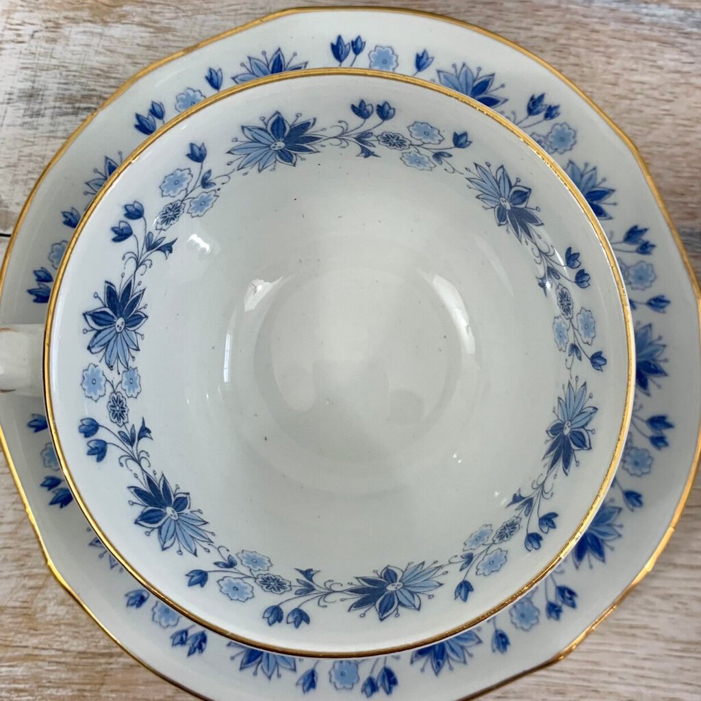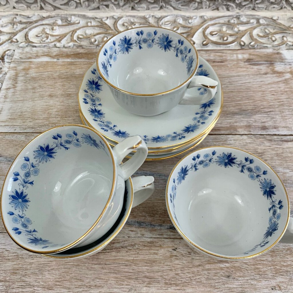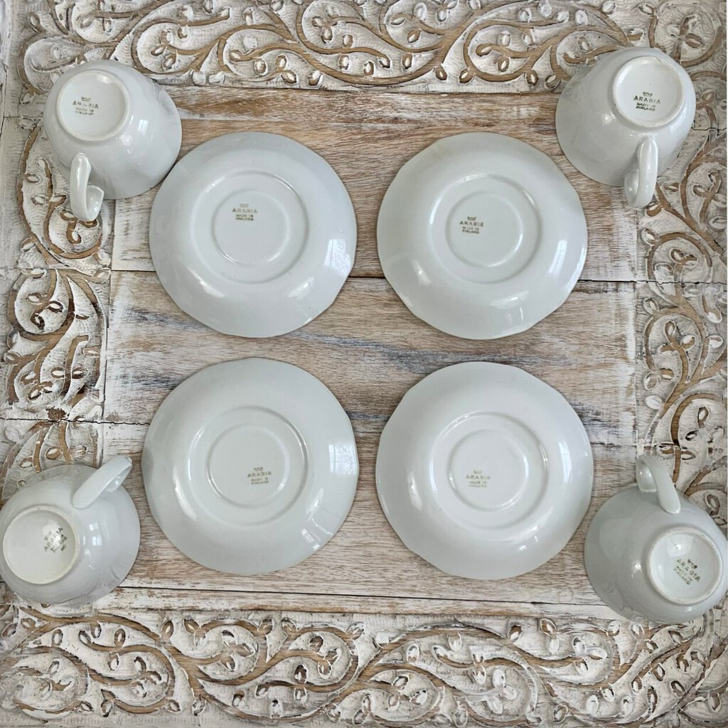 Vintage Arabia of Finland Blue Flower Teacups and Saucers Set/4, Mid-Century Scandinavian /cb