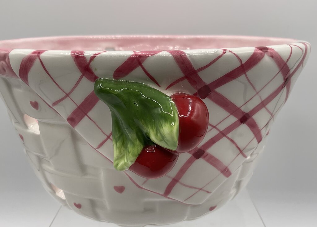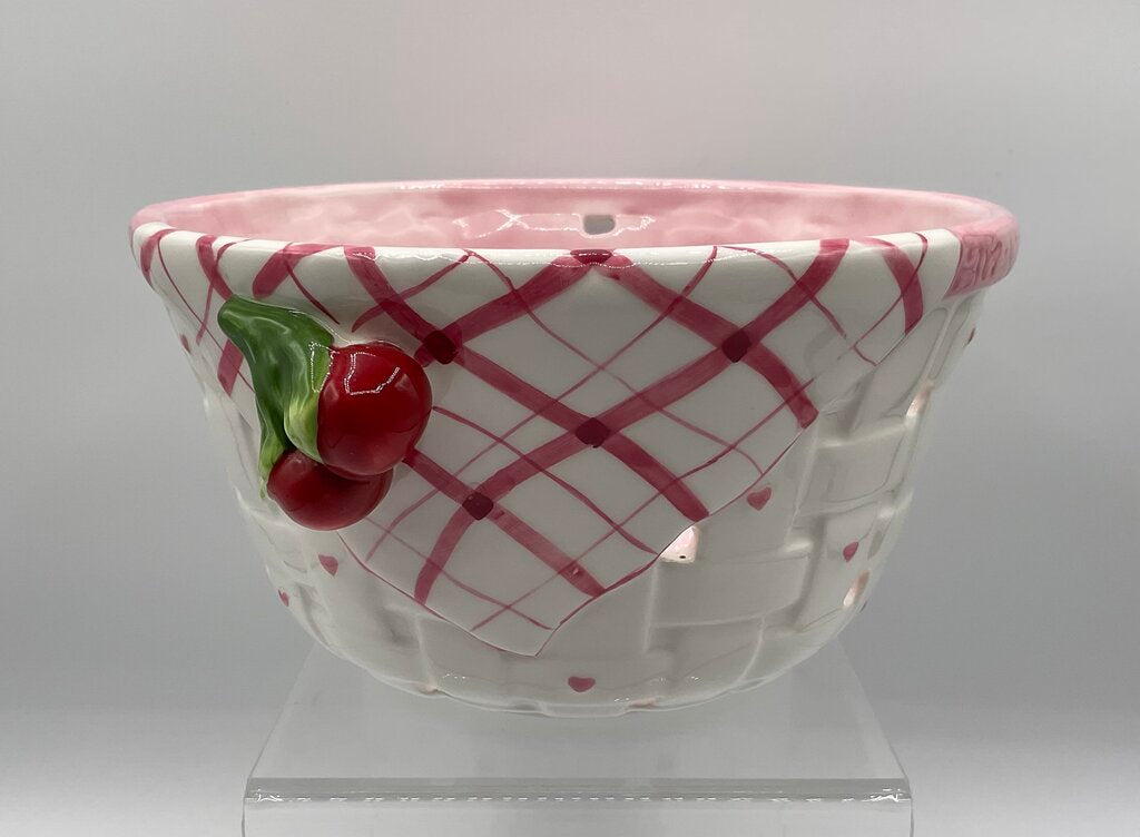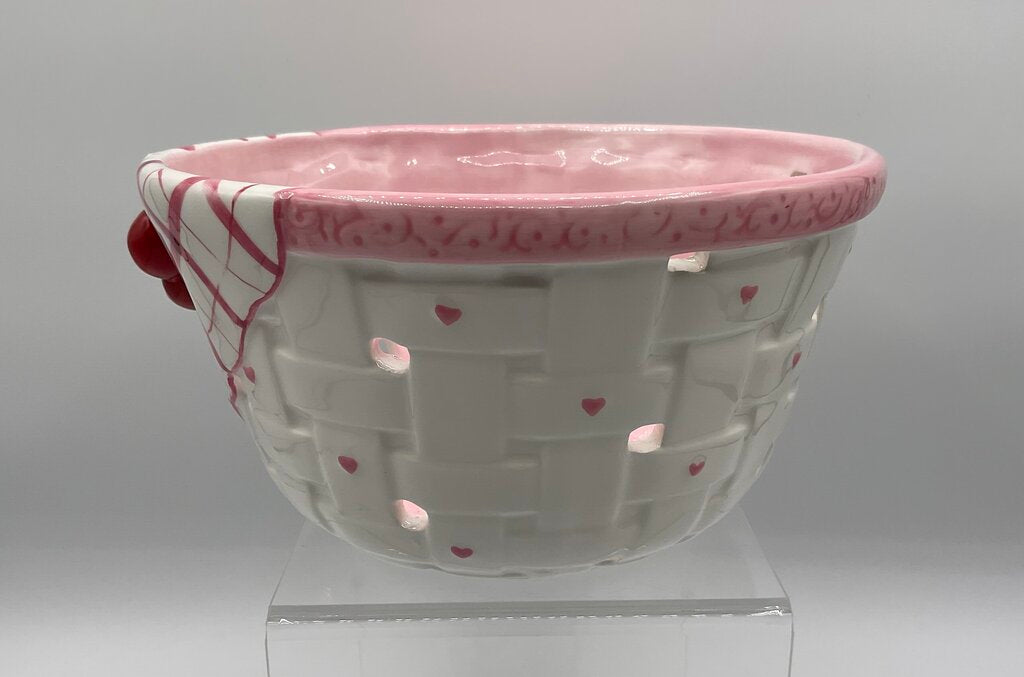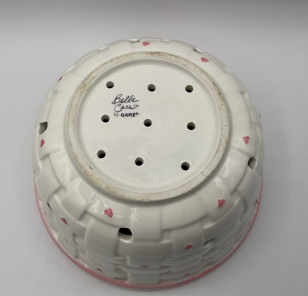 Vintage Bella Casa by Ganz Ceramic Cherry & Hearts Basket Strainer