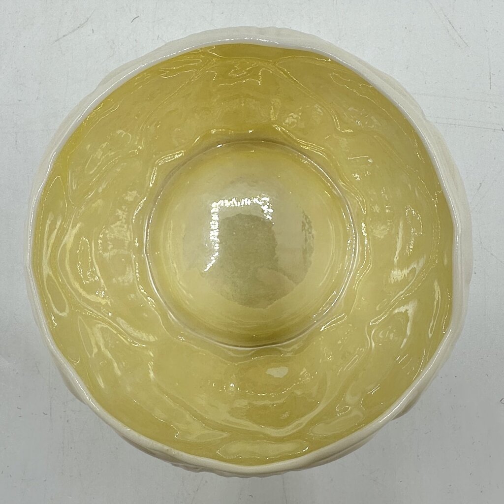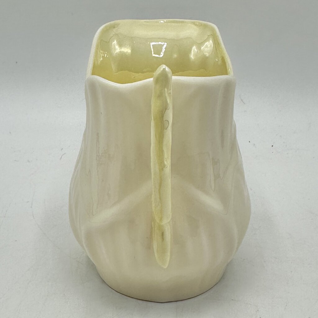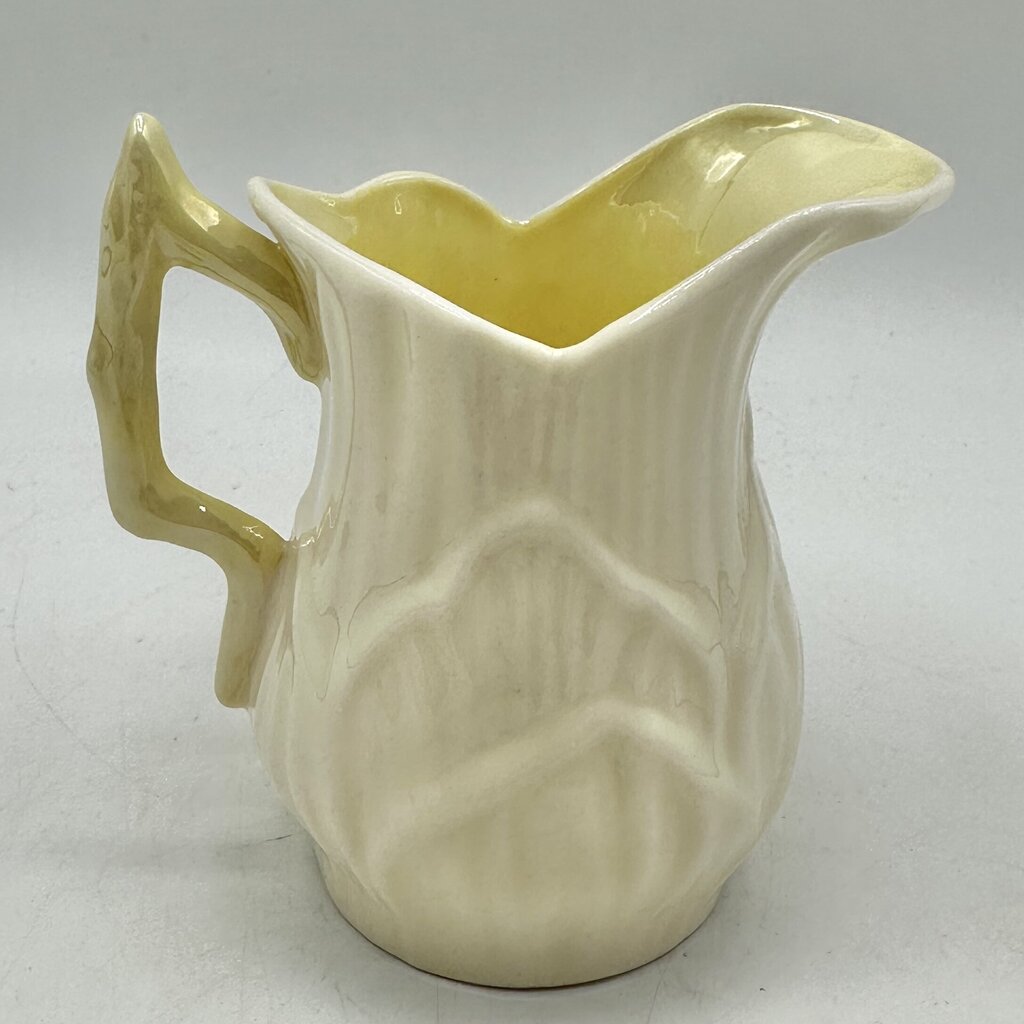 Vintage Belleek Lily ivory colored creamer and open sugar bowl with a yellow luster glaze interior. Crafted in Ireland from 1955 to 1965. This lovely set, made of delicate Parian porcelain is exceptional vintage condition with no chips, cracks, crazing or repairs. The creamer is 3 3/8” tall and 3 1/2” wide handle to spout, the sugar bowl is 2” tall and has a 3” diameter.
