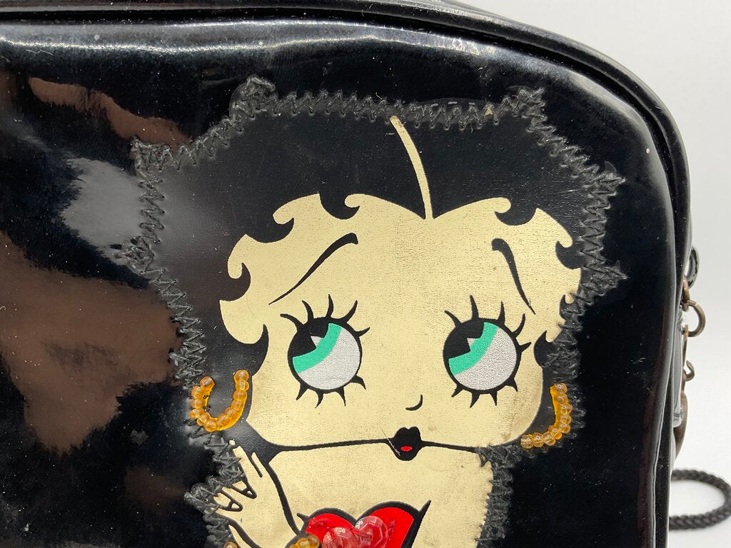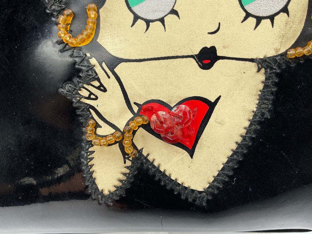 This small purse/handbag features the iconic cartoon character Betty Boop stitched onto the bag. Her earrings and bracelets both pop off of the bag using small beads to make a 3D effect. The zipper is a heart shape, a staple of Betty Boop. This bag is in overall great vintage shape, no tears, rips, or other damages present. Please refer to all photos for overall condition. Bag measures 8 1/4” long by 6 1/8” tall and weighs 5.7 ounces. Estate item. Condition is pre owned. Ships USPS Ground Advantage Mail.