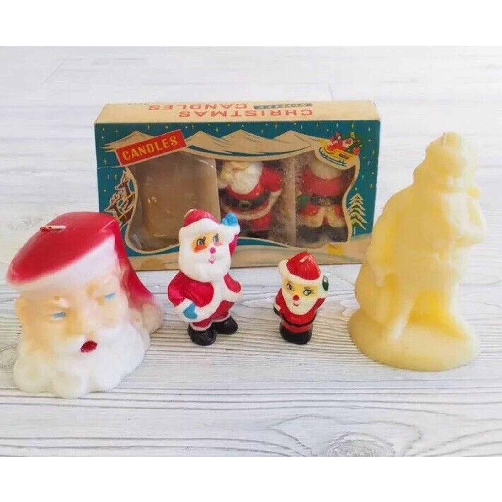 Vintage Christmas Wax Figure Candles Santa Unmarked Lot 6 /c