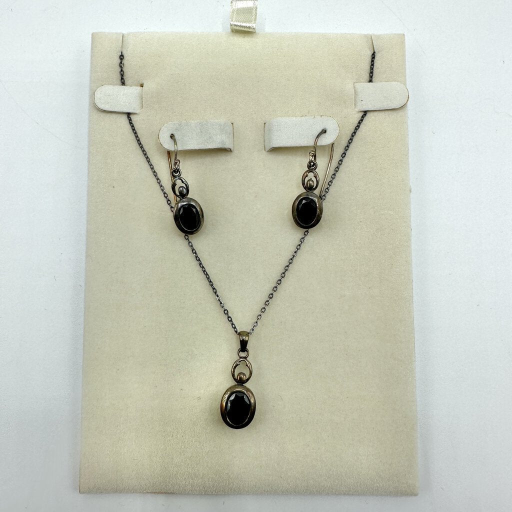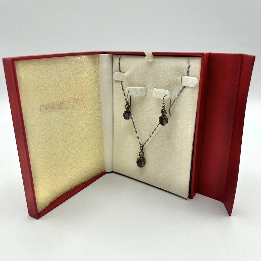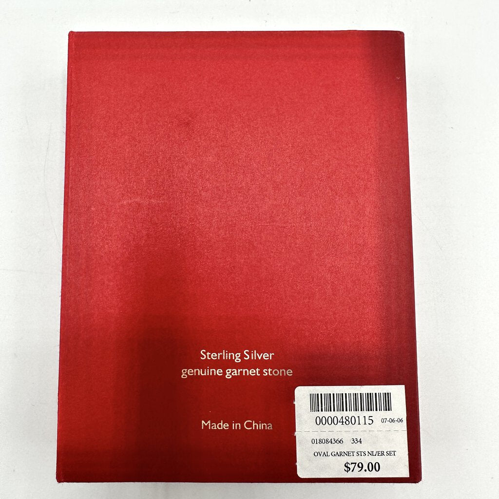 Vintage Coldwater Creek Sterling Silver & Garnet Necklace & Earring Box Set /cb