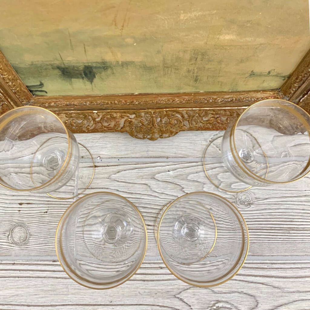 Vintage Crystal Gold Gilded Wine Glasses Set/4 /cb
