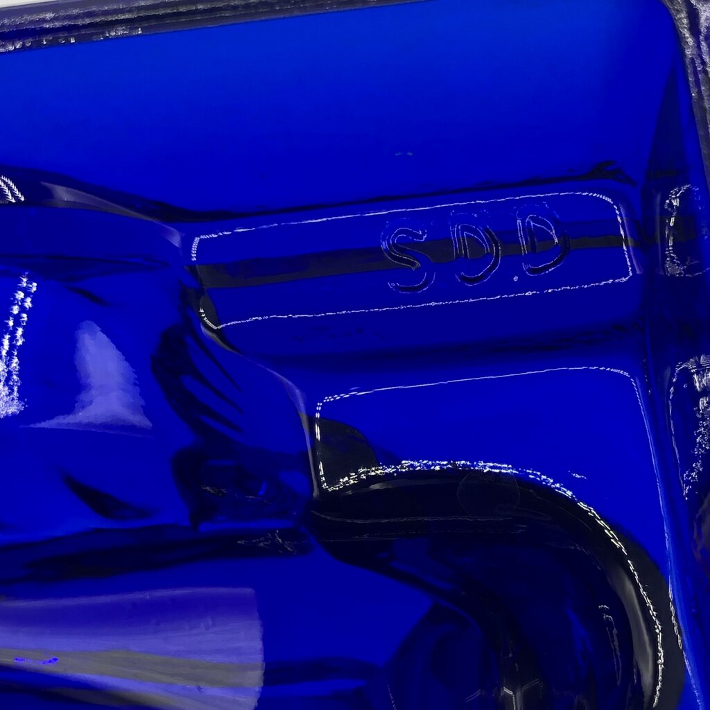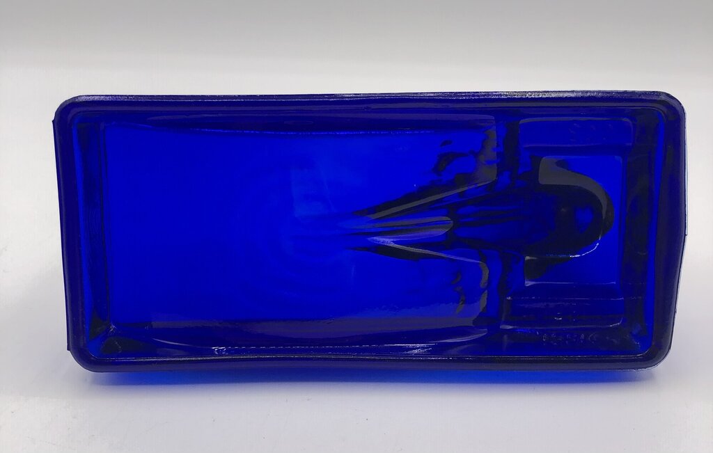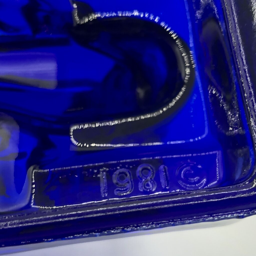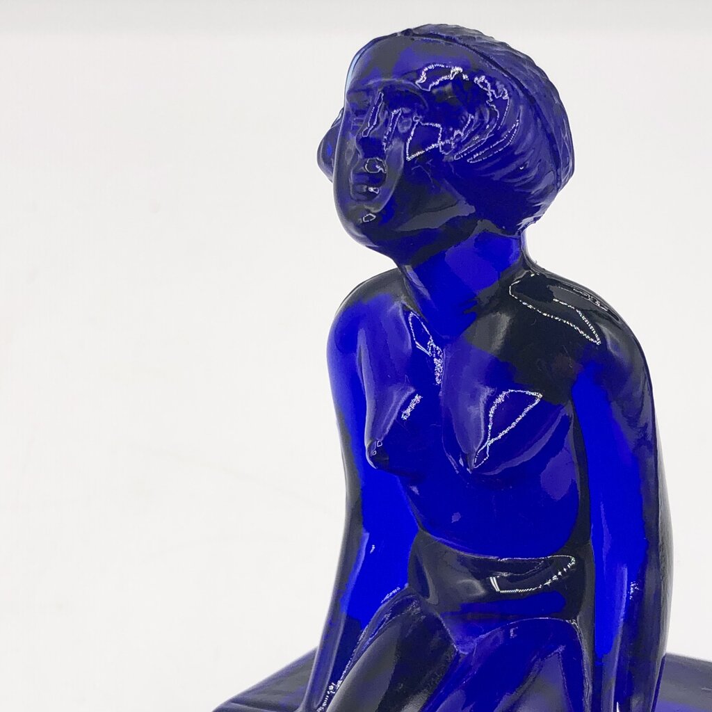This is a cobalt glass 1981 reproduction of a Heinrich Hoffman Bathing Nude Lady soap dish.
