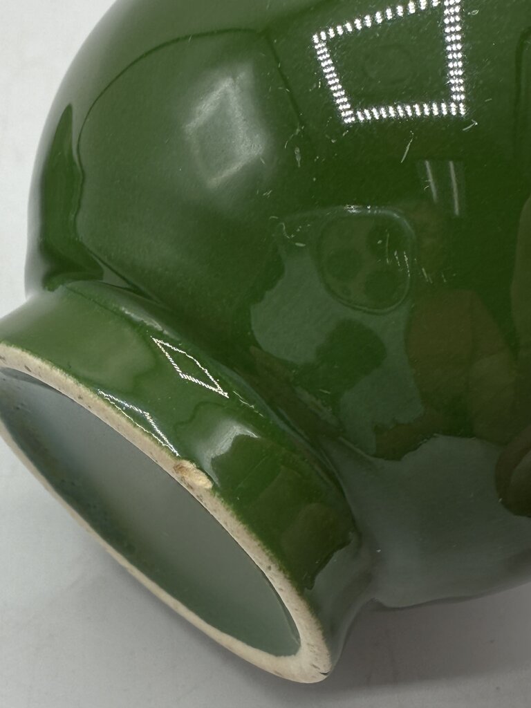 This post is for 3 pieces of vintage Fiesta Fiestaware dishes in hard to find Forest Green color. Set includes Footed Tea/Coffee cup with ring handle measuring 2.75” tall by 3.25” in diameter with matching 6” in diameter saucer. The third piece in the set is a 6.25” in diameter Bread plate. Made in the U.S.A.. The coffee cup does have two small flea bites of glaze missing. Please review photos.