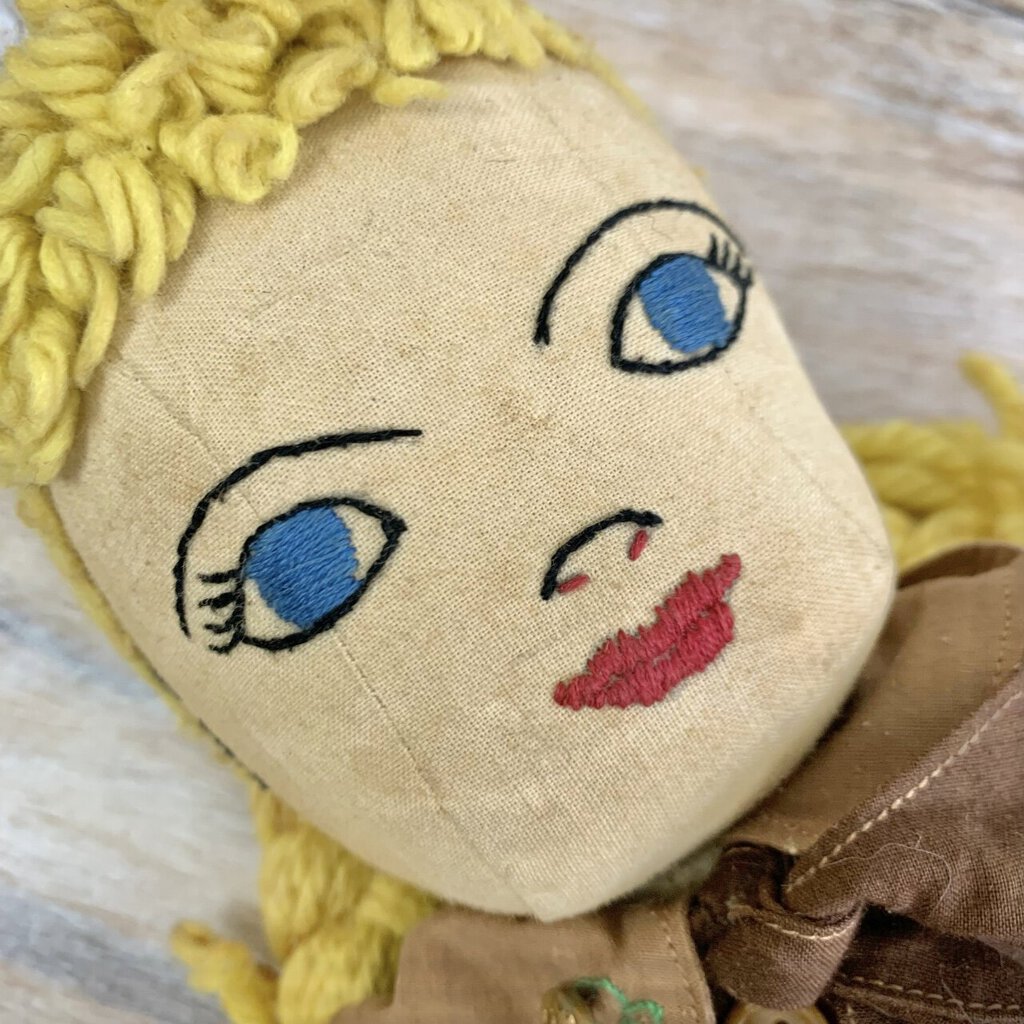Vintage Hand Embroidered Cloth And Yarn Brownie Doll /cb
