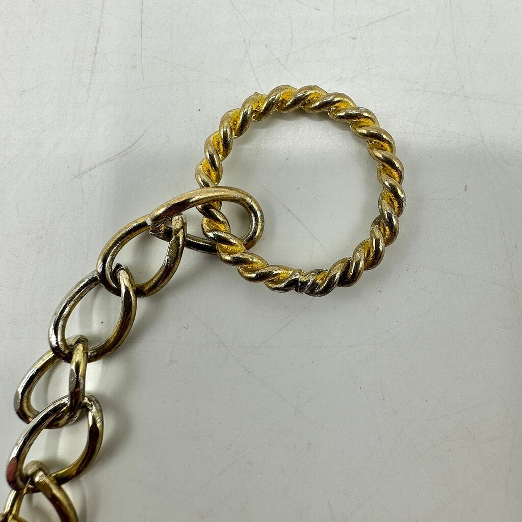 Vintage Harwill NY ca.1980s women’s cameo statement belt, this belt is perfect for adding a touch of elegance and unique flair to any outfit. It features 7 beautiful cameo medallions set against a gold tone chain. A statement belt like this can transform and entire look. The belt is 36” long overall, and fits up to a 33” waist. It is in good vintage condition, the gold tone of the metal has faded in areas, but that gives it an antique vibe and adds character. There are no major issues.