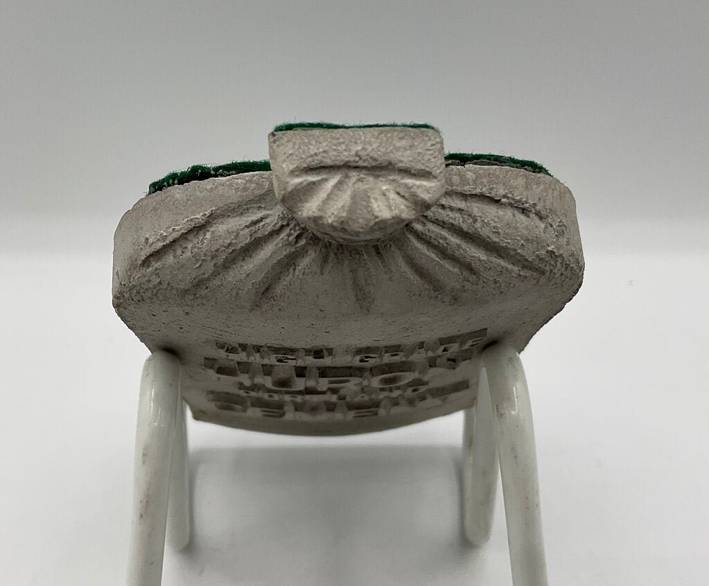 This vintage paperweight was produced to market or advertise the Michigan-based company Huron Cement. It resembles a bag of Portland cement and has a green felt backing. This piece is in great vintage condition, please carefully review all photos for overall condition. Item measures 4 1/2” by 2 1/2” by 5/8” and weighs 7.2 ounces. Estate item. Condition is pre owned. Ships USPS Ground Advantage Mail.
